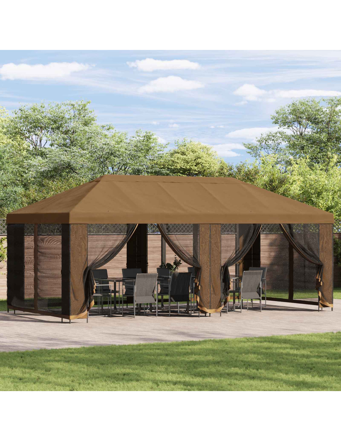 La copertura per gazebo con pareti laterali offre una soluzione versatile per ombreggiare gli spazi all'aperto, progettata per arricchire ogni giardino o terrazzo con la sua struttura adattabile. Questa copertura è bella da vedere, si integra perfettamente in molti gazebo. È pensata per proteggerti dal sole, migliorare la circolazione dell'aria e creare un'area accogliente per amici e famiglia. L'atmosfera che crea è perfetta sia per incontri informali che per eventi più formali all'aperto, permettendoti di goderti al massimo la vita all'aria aperta. Materiale in poliestere: Questa copertura per gazebo è fatta in poliestere robusto, noto per la sua grande resistenza all'acqua. Resiste bene alla pioggia, mantenendo forma e colore nel tempo. Inoltre, non richiede molta manutenzione, rendendolo un'ottima scelta per chi ama stare all'aperto. Componenti inclusi: Nella confezione trovi la copertura per gazebo con sei pareti laterali in rete, che ti offrono ampio spazio di protezione dal sole e dagli insetti. Le pareti si attaccano facilmente con chiusure a strappo, migliorando comfort e praticità all'interno del gazebo. Design per la circolazione dell'aria: La copertura ha un tetto progettato apposta per favorire il flusso d'aria, evitando l’accumulo di calore e garantendo un ambiente fresco. Questo design aumenta non solo il comfort, ma aiuta anche a mantenere la struttura del gazebo in buone condizioni, prevenendo l'umidità. Utilizzo all'aperto: Perfetta per l'uso esterno, questa copertura e le pareti laterali sono ideali per feste estive, riunioni e momenti di relax. Resiste a diverse condizioni climatiche, assicurando prestazioni costanti durante tutta la stagione. Assemblaggio richiesto: Montare questo gazebo richiede due persone per una corretta installazione. Ti servirà un cacciavite e seguendo istruzioni semplici potrai goderti al più presto il tuo rifugio all'aperto.