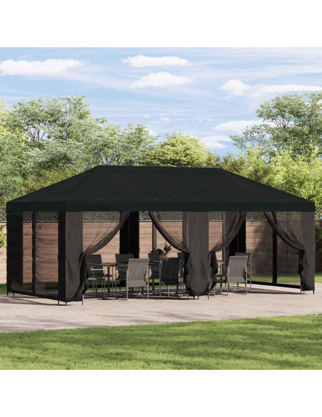 - Pareti laterali in rete nera con Hook-and-loop fasteners