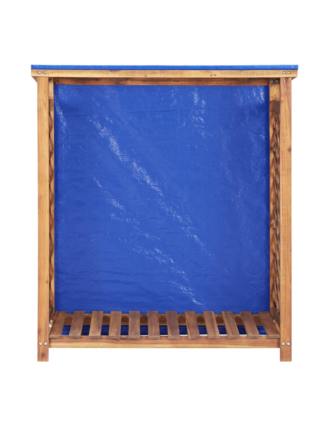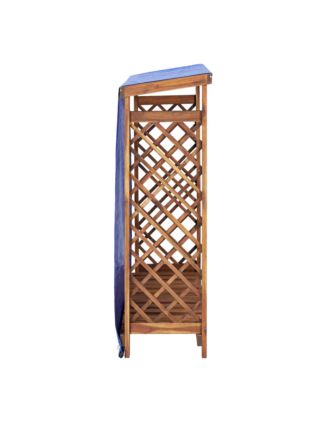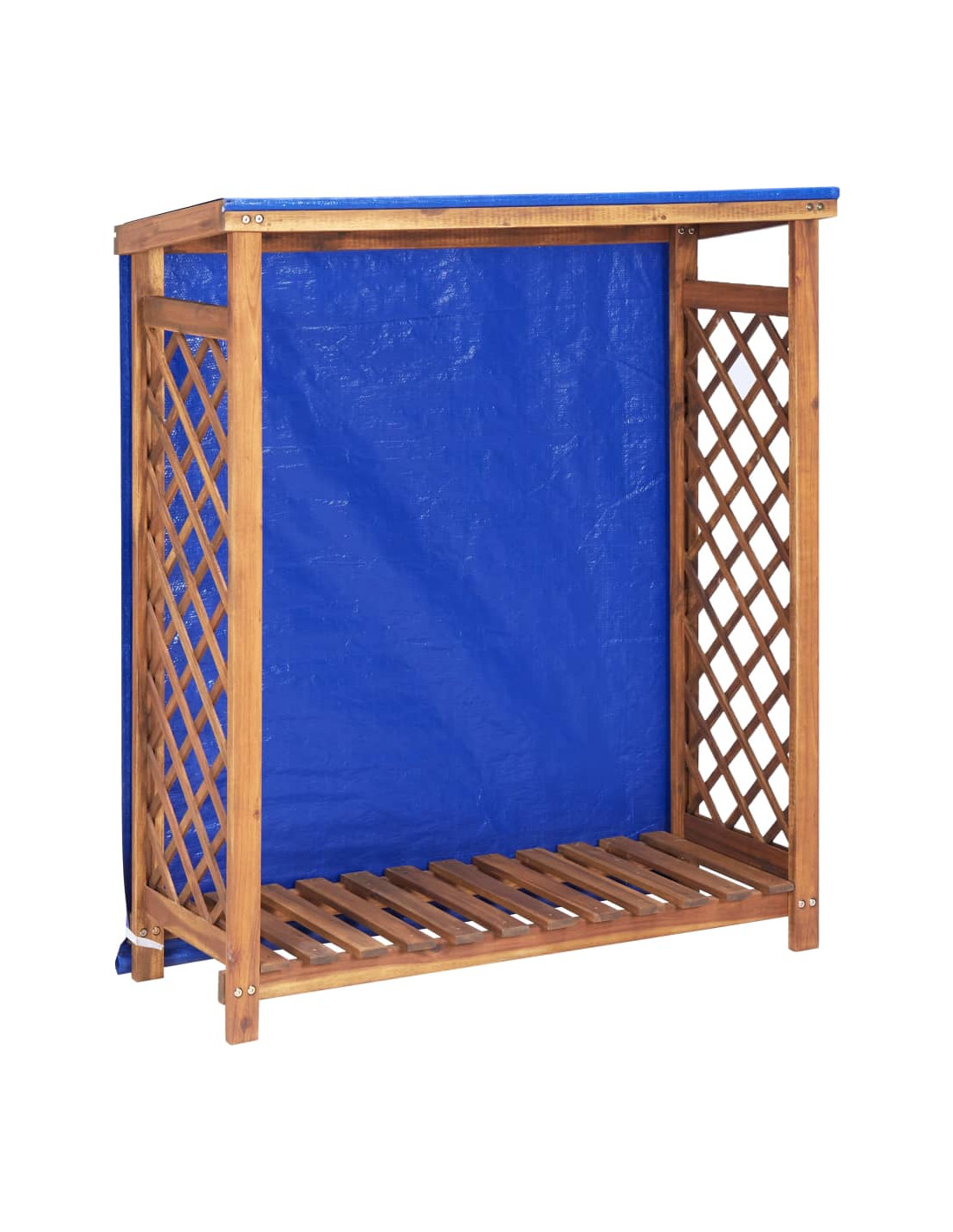 Realizzata in legno massello di acacia con finitura ad olio, questa rimessa per legna da ardere è molto robusta, durevole e resistente alla putrefazione. Il design del tetto inclinato con telone integrato consente un efficiente deflusso dell'acqua per mantenere la legna asciutta. Entrambi i lati con design reticolare garantiscono una sufficiente circolazione dell'aria. Inoltre, l'ampia apertura nella parte anteriore permette un facile accesso alla legna.