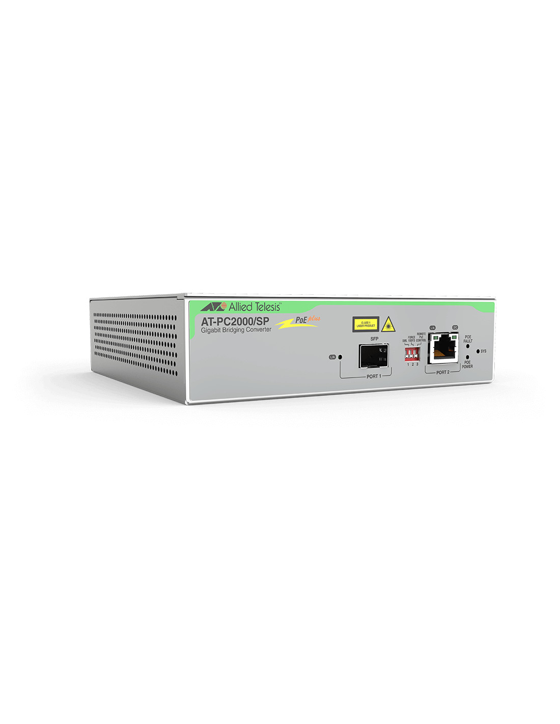 Allied Telesis AT-PC2000/SP-60. Velocità massima di trasferimento dati: 1000 Mbit/s, Velocità di trasmissione a pacchetto (10 Mbps): 14880 pps, Velocità di trasmissione a pacchetto (100 Mbps): 148880 pps. Distanza massima di trasferimento: 100 m, Lunghezza d'onda: 850 nm. Indicatori LED: Attività, Collegamento, Rete, PoE, Colore del prodotto: Grigio. Connettore a fibra ottica: SFP, Tecnologia di connessione: Cablato. Voltaggio di ingresso: 220 - 240 V, Frequenza di ingresso AC: 50 Hz, Consumi: 30 W