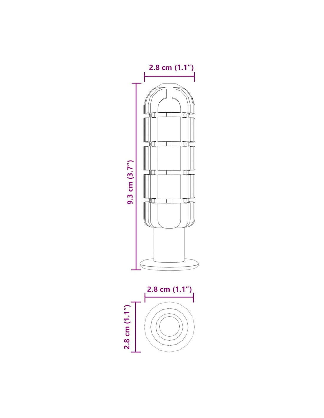 - Dimensioni complessive: 2,8 x 2,8 x 9,3 cm (L x P x A)