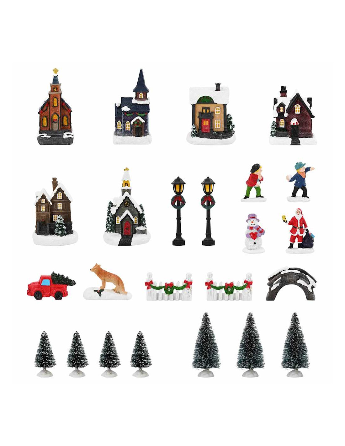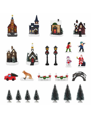 - Componenti del Set Completo: Il set include diversi personaggi come alberi, luci, un pupazzo di neve, una volpe, Babbo Natale, recinzioni, bambini, un ponte e case. Ogni pezzo crea un vivace paesaggio da villaggio, raccontando una storia che si evolve ogni Natale.