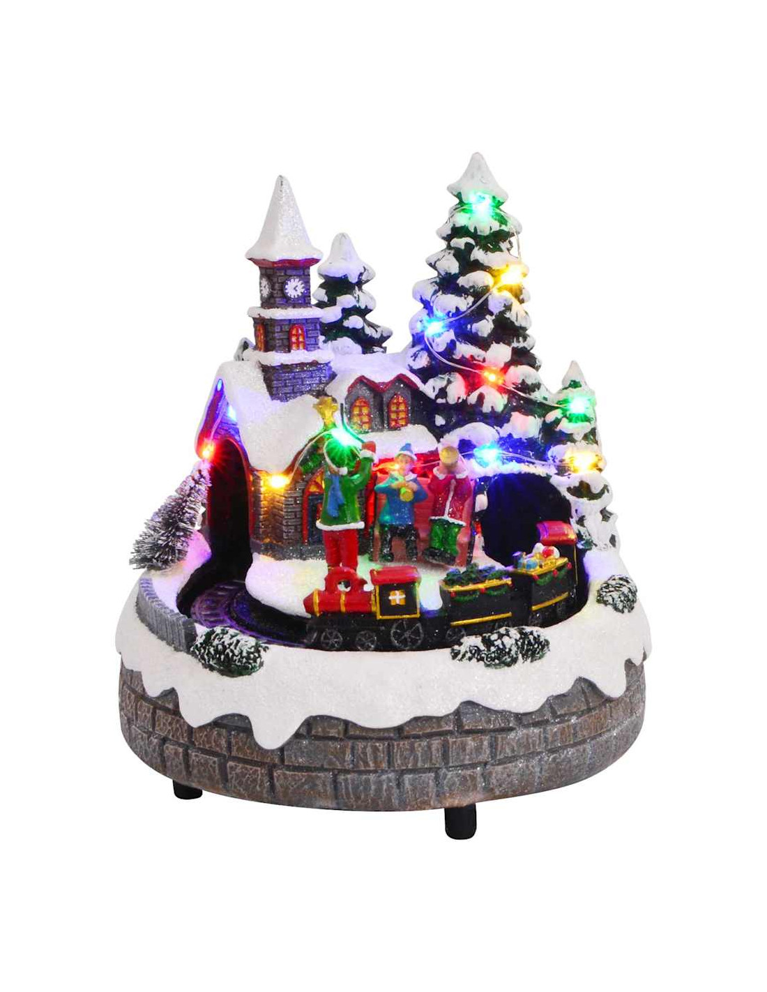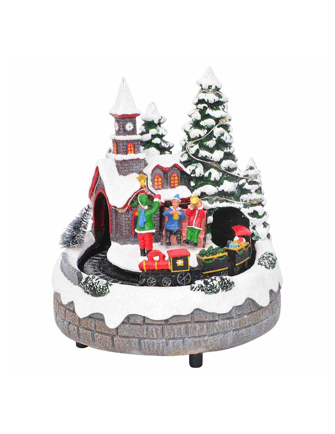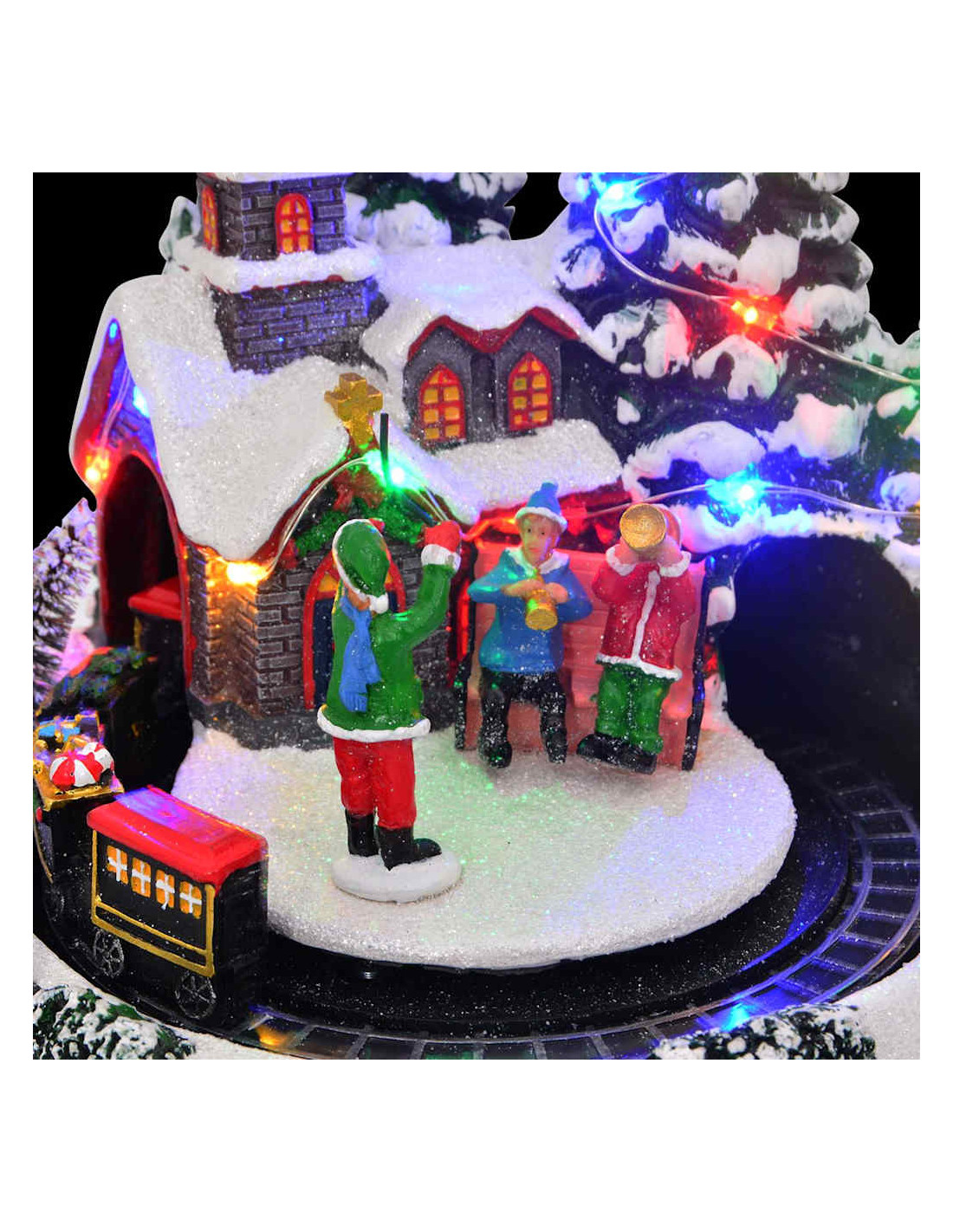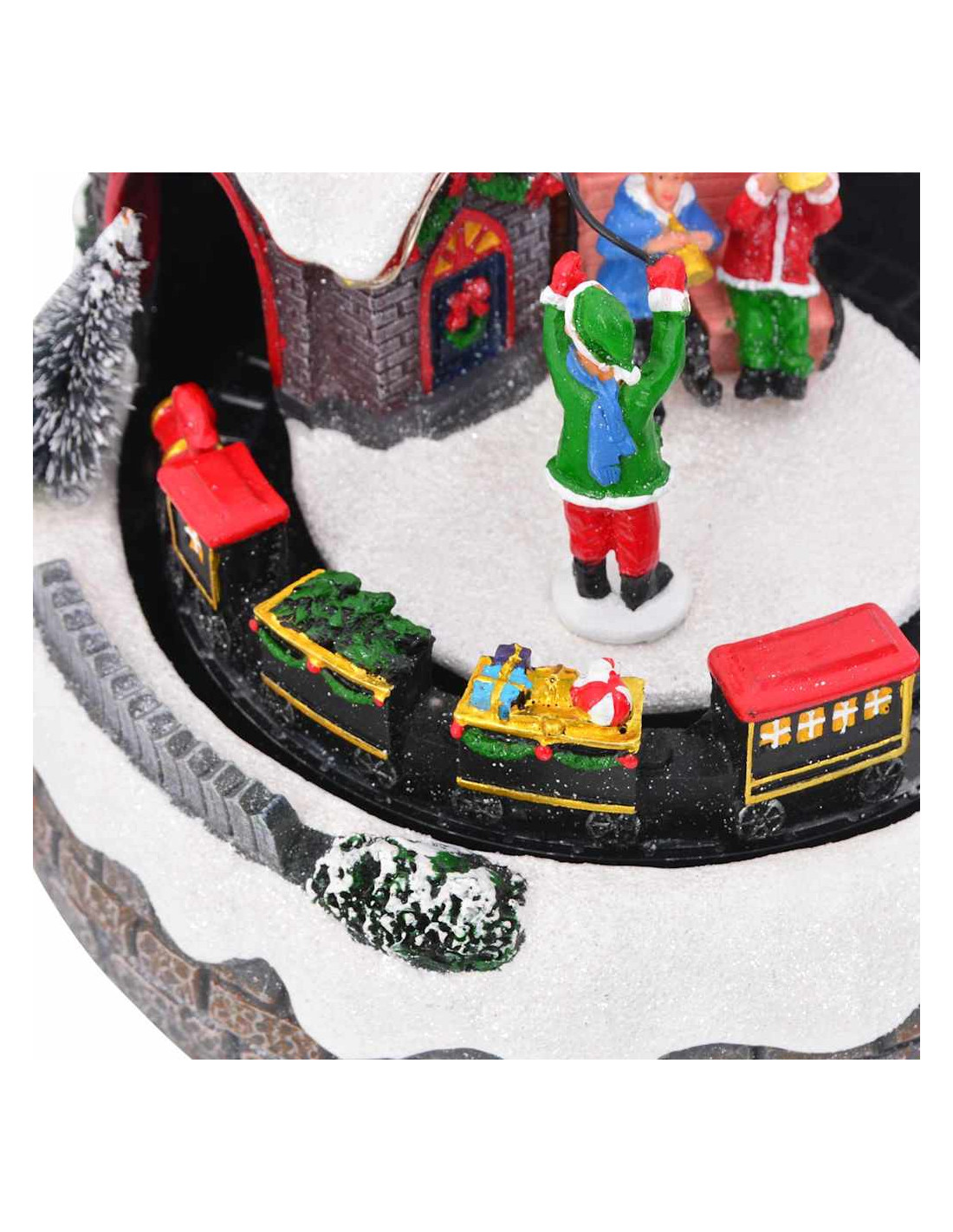 - Funzioni / Design: Questo decoro natalizio è dotato di intarsi decorativi e di una scena ferroviaria dettagliata, aumentando il suo fascino visivo. La scena prende vita con luci LED, musica e dettagli intricati, regalando profondità e divertimento al tuo allestimento natalizio.