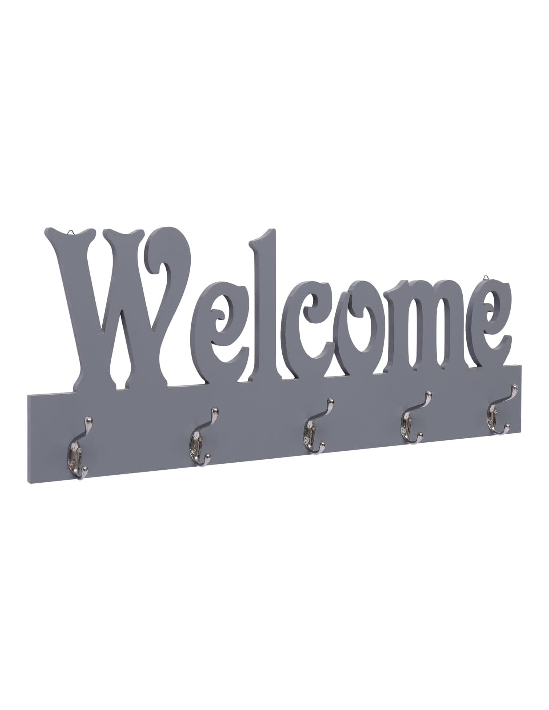 Questo appendiabiti a parete si distingue per l'esclusiva scritta "Welcome" intagliata e per i 4 ganci in rame dove appendere cappotti, chiavi, asciugamani, ombrelli e altro ancora. Il prodotto è realizzato in MDF di qualità, ed è resistente all'usura, durevole ed antimacchia. Grazie al suo design semplice e pratico questo appendiabiti da parete è il prodotto perfetto per aggiungere un elemento sia decorativo che funzionale al vostro spazio abitativo.