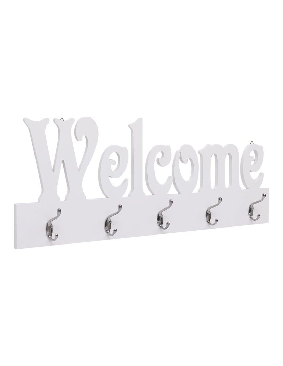 Questo appendiabiti a parete si distingue per l'esclusiva scritta "Welcome" intagliata e per i 4 ganci in rame dove appendere cappotti, chiavi, asciugamani, ombrelli e altro ancora. Il prodotto è realizzato in MDF di qualità, ed è resistente all'usura, durevole ed antimacchia. Grazie al suo design semplice e pratico questo appendiabiti da parete è il prodotto perfetto per aggiungere un elemento sia decorativo che funzionale al vostro spazio abitativo.
