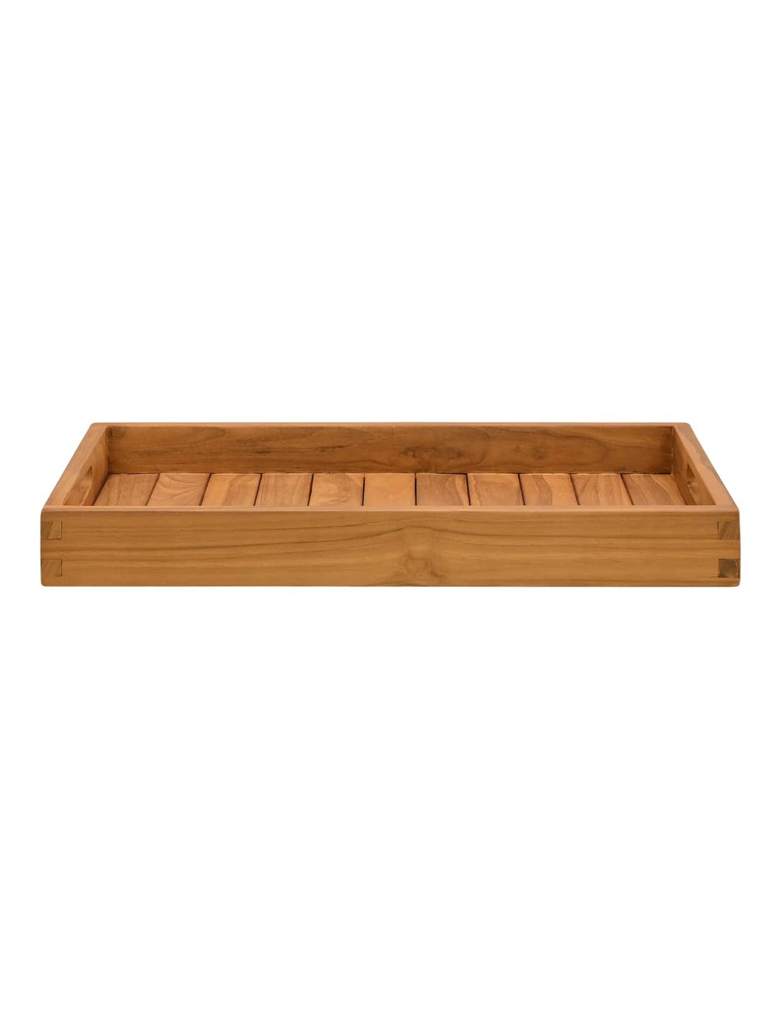Questo classico vassoio da portata è realizzato in legno massello di teak estremamente resistente. Questo pezzo di teak viene stagionato, essiccato in forno e quindi levigato finemente per conferire un aspetto molto liscio. Il legno di teak è noto per la sua eccezionale resistenza agli agenti atmosferici ed è una scelta perfetta se desiderate acquistare un vassoio in legno di lunga durata. Il vassoio da tè può essere utilizzato anche come accessorio caratteristico per la casa su cui disporre i vostri oggetti più importanti.