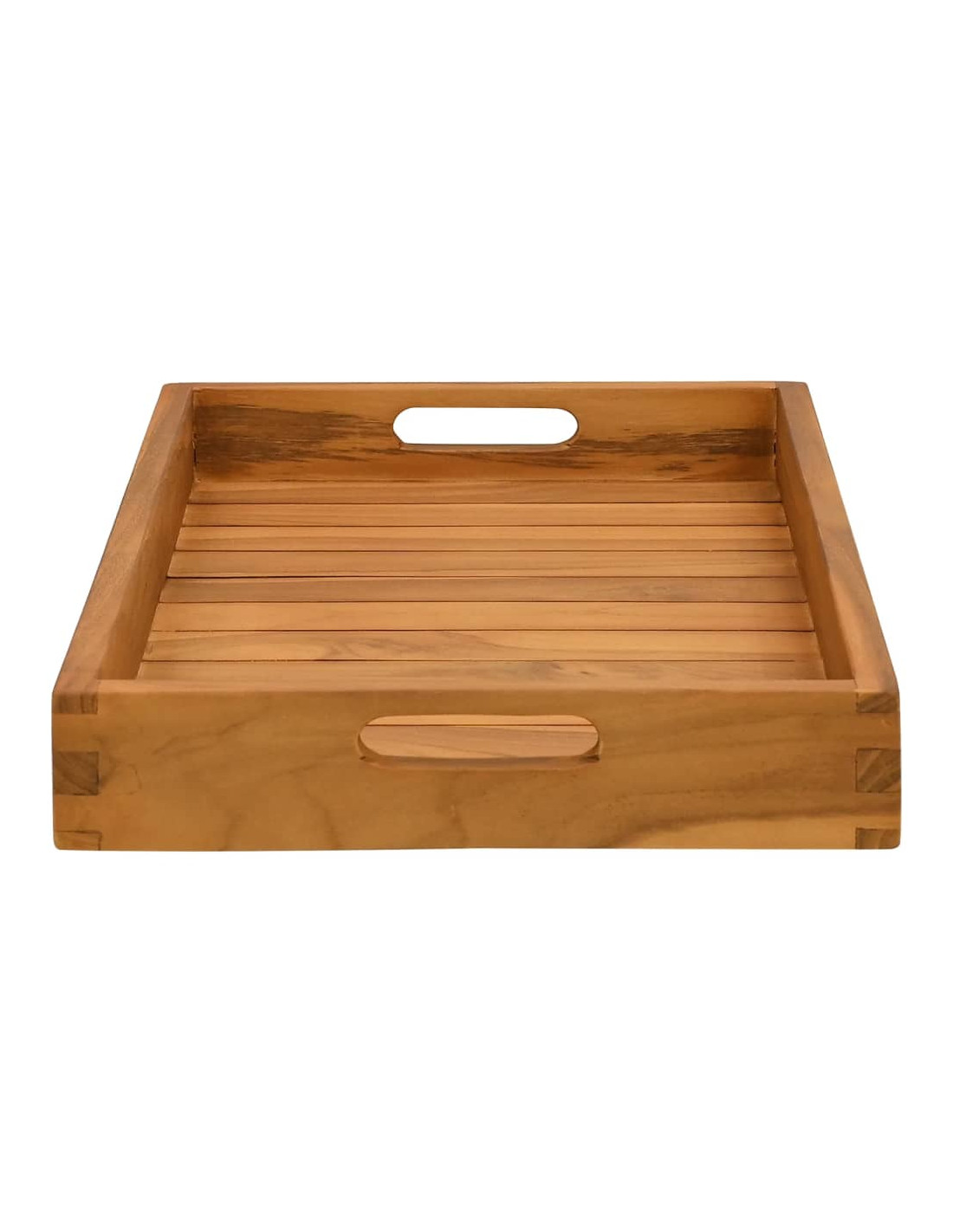 Il vassoio da portata in legno è progettato con bordi rialzati che impediscono al liquido di fuoriuscire. Ha anche robuste maniglie incassate per facilitare gli spostamenti.