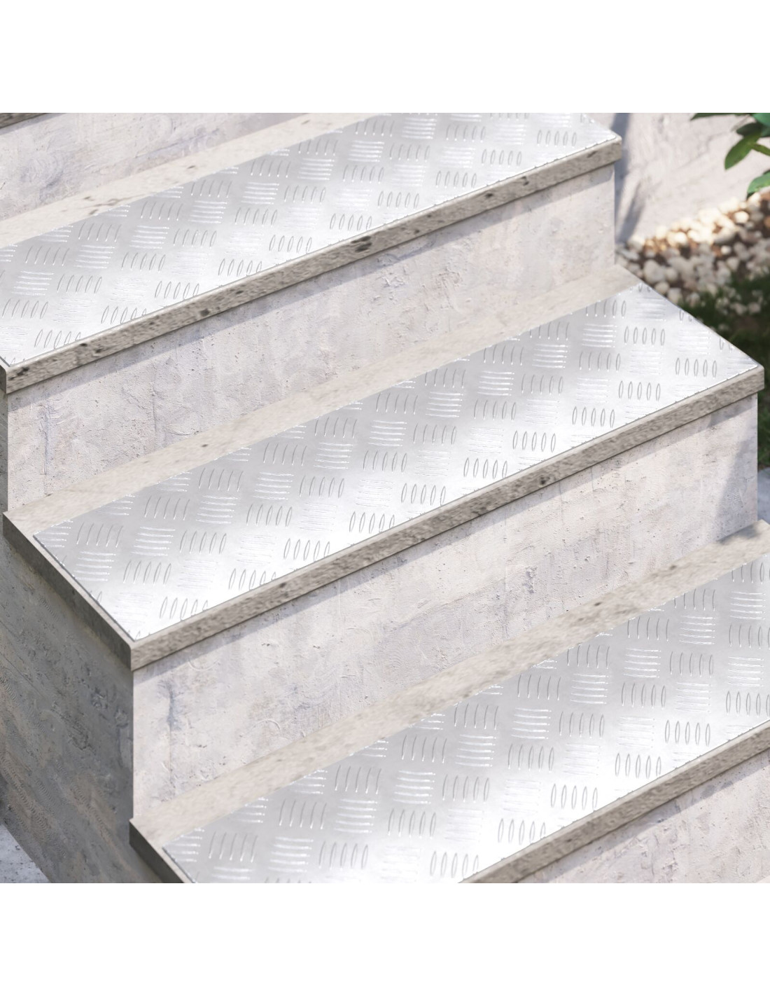 - Costruzione in alluminio: Questi gradini sono fatti in alluminio, una scelta robusta e resistente. Il design a piastre quadrettate non solo migliora l'aspetto, ma offre anche una buona presa per camminare in sicurezza. Leggeri e facili da installare, sono un'ottima aggiunta a qualsiasi scala.