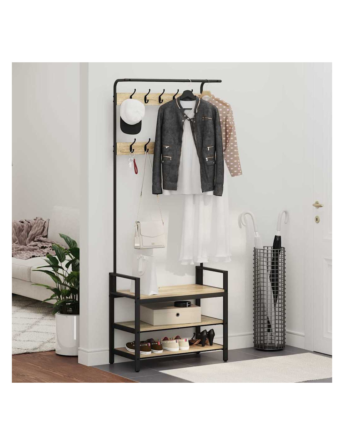 - Componenti Inclusi: Viene fornito con ripiani in legno ingegnerizzato, che offrono tanto spazio per cappotti, scarpe e altre cose personali. La solida struttura in metallo fa sì che i ripiani possano sostenere oggetti più pesanti senza oscillare, mantenendo al sicuro le tue cose.
