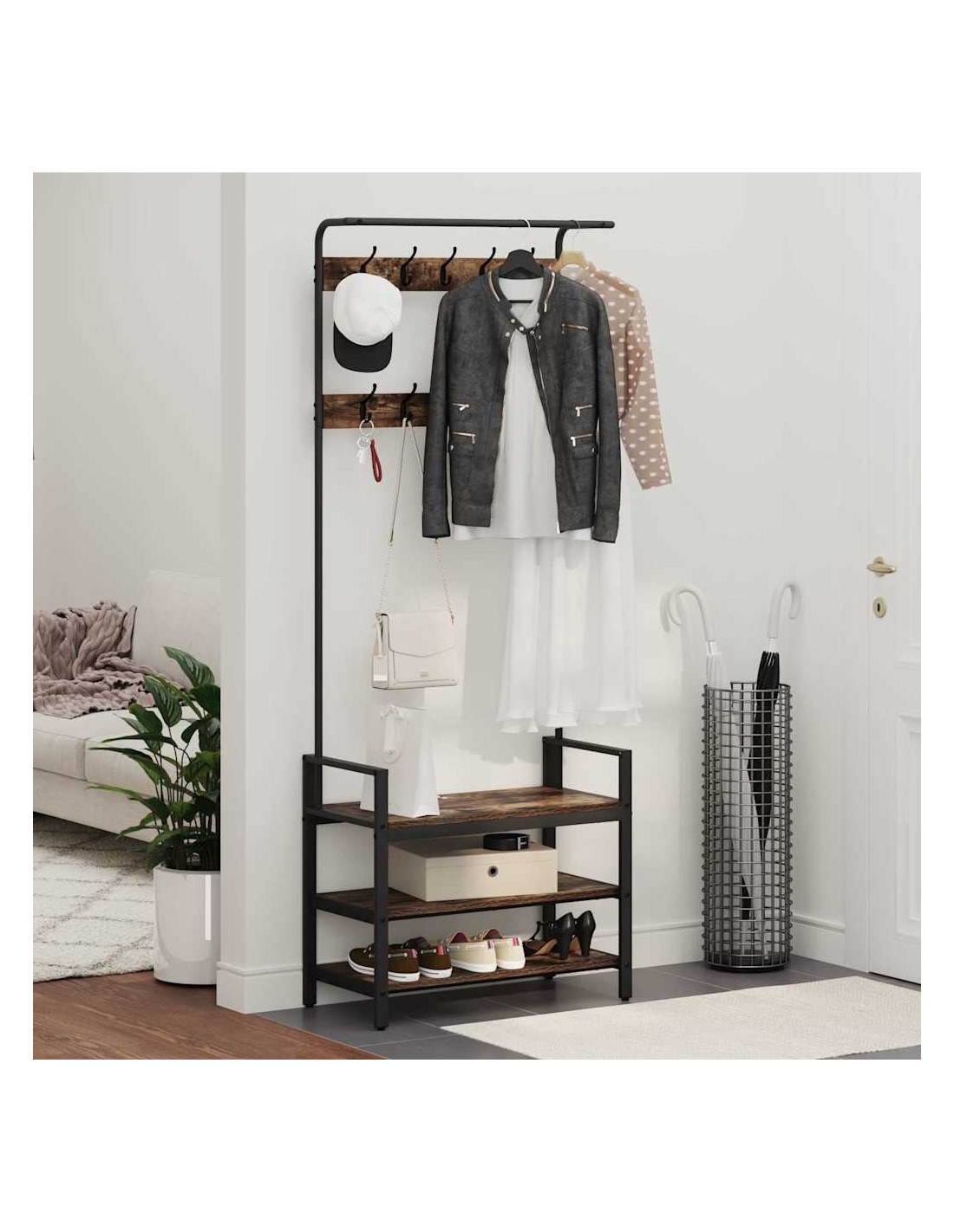 - Componenti Inclusi: Viene fornito con ripiani in legno ingegnerizzato, che offrono tanto spazio per cappotti, scarpe e altre cose personali. La solida struttura in metallo fa sì che i ripiani possano sostenere oggetti più pesanti senza oscillare, mantenendo al sicuro le tue cose.