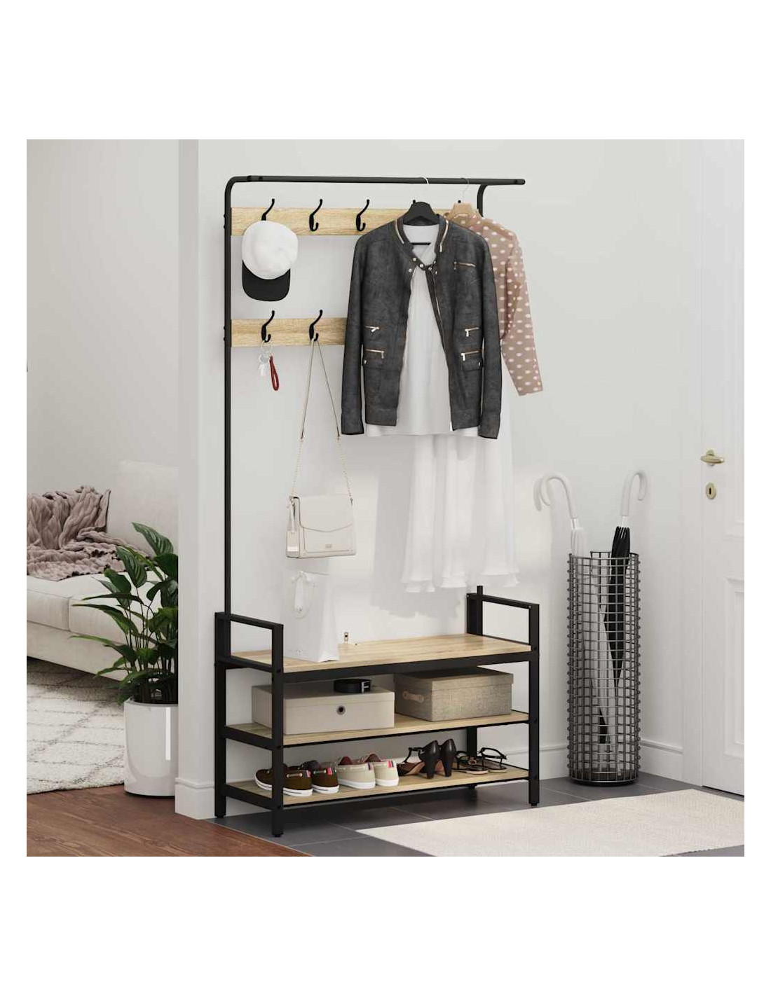 - Componenti Inclusi: Viene fornito con ripiani in legno ingegnerizzato, che offrono tanto spazio per cappotti, scarpe e altre cose personali. La solida struttura in metallo fa sì che i ripiani possano sostenere oggetti più pesanti senza oscillare, mantenendo al sicuro le tue cose.