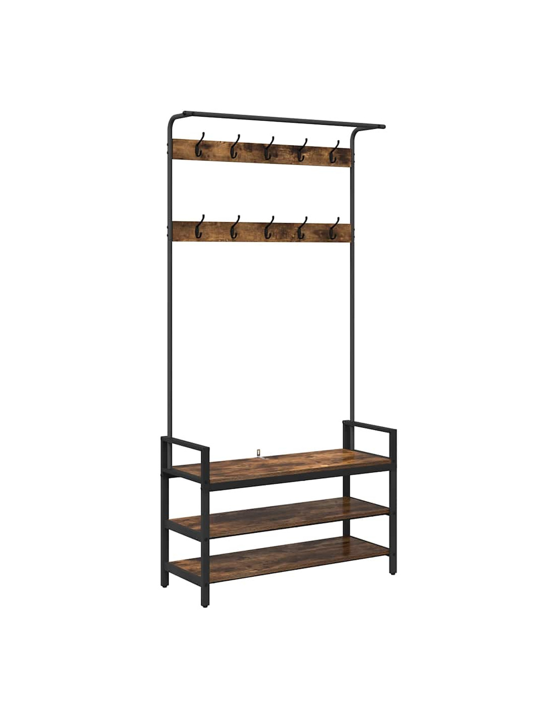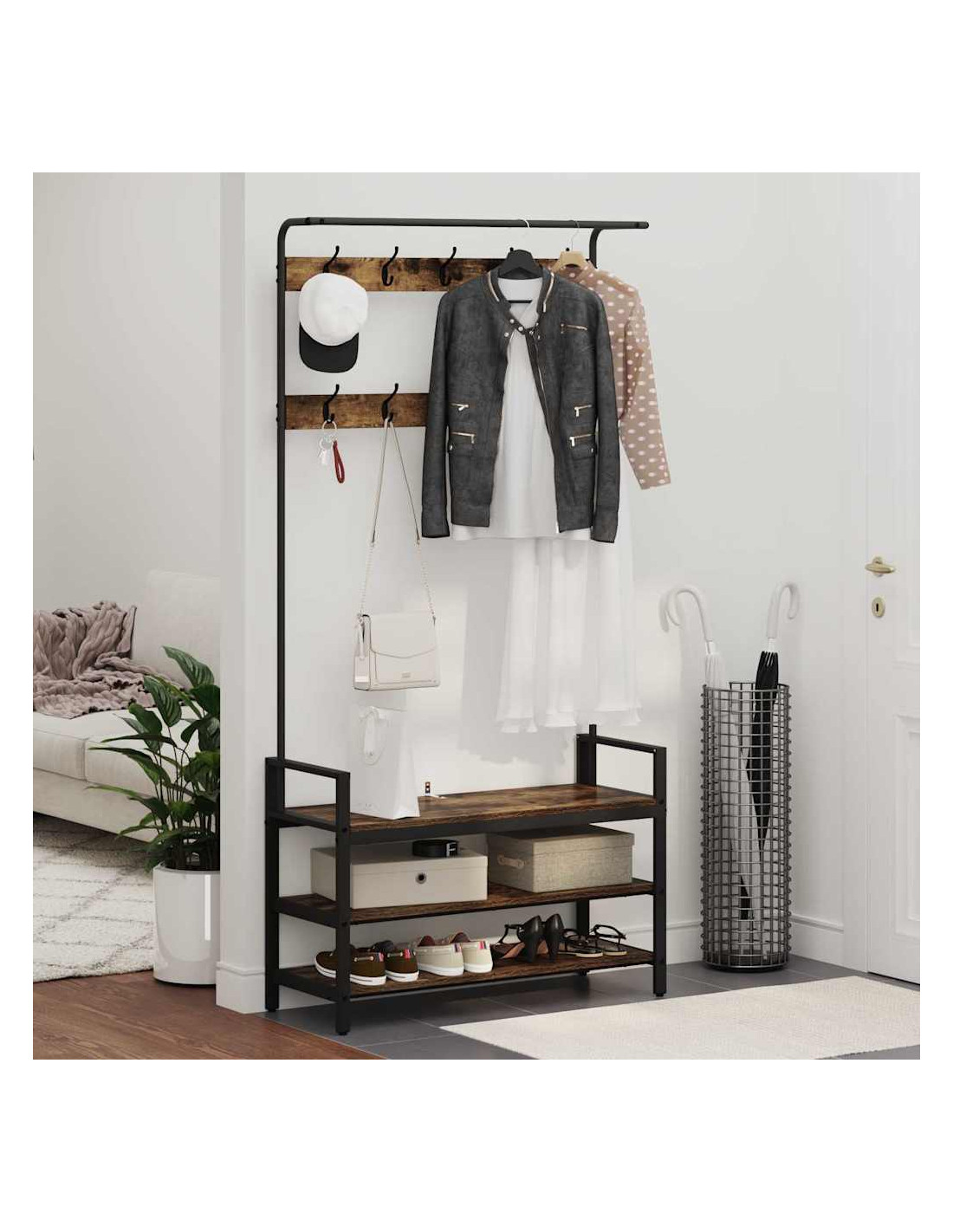 - Componenti Inclusi: Viene fornito con ripiani in legno ingegnerizzato, che offrono tanto spazio per cappotti, scarpe e altre cose personali. La solida struttura in metallo fa sì che i ripiani possano sostenere oggetti più pesanti senza oscillare, mantenendo al sicuro le tue cose.