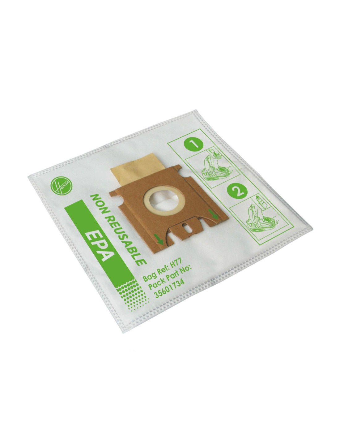 Hoover H77 Micro Bag. Tipo di prodotto: Sacchetto per la polvere, Adatto per tipo di aspirapolvere: A cilindro, Colore del prodotto: Bianco, Verde. Quantità per pacco: 4 pz