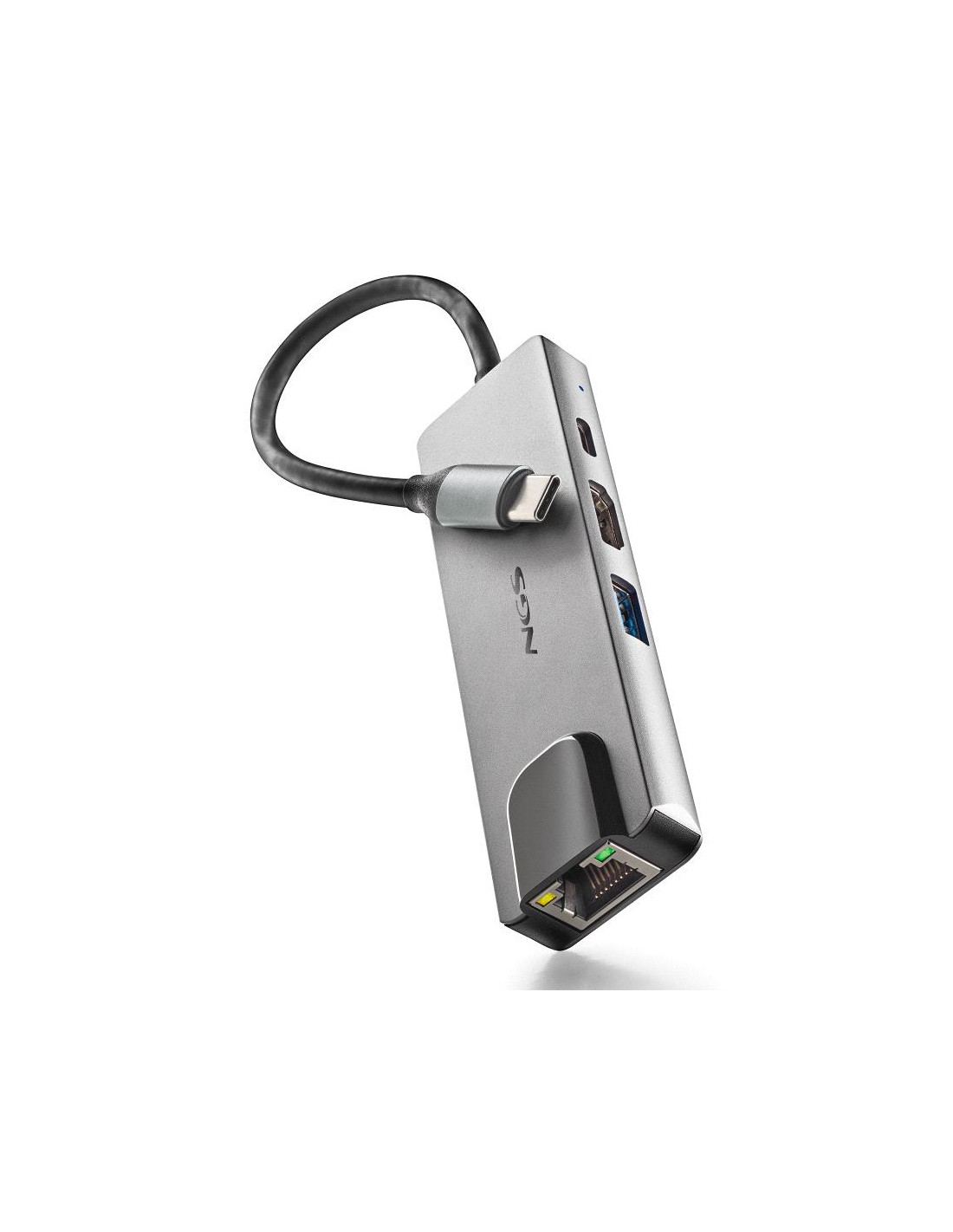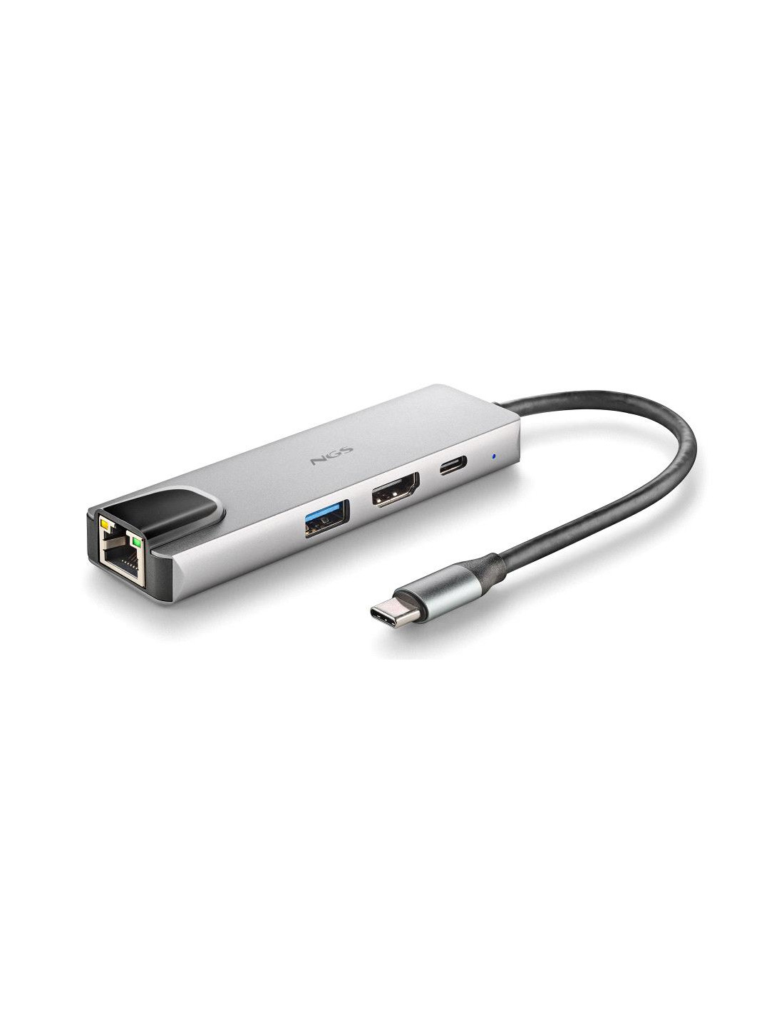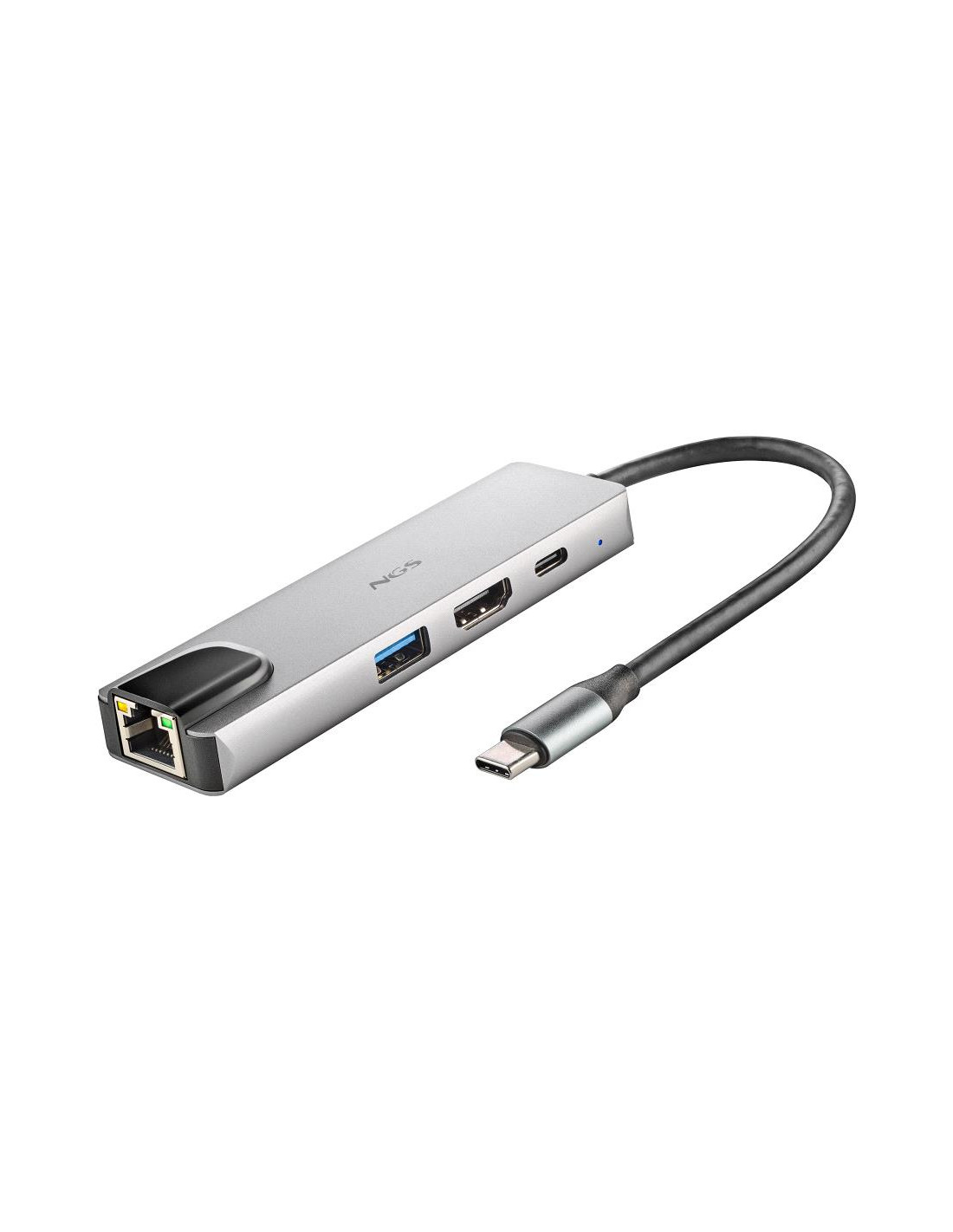 NGS -HUB-0140. Interfaccia host: USB 2.0 Type-C, Interfacce hub: HDMI, RJ-45, USB 3.2 Gen 1 (3.1 Gen 1) Type-A, USB tipo-C. Velocità di trasferimento dati: 5000 Mbit/s, Massima risoluzione (HDMI): 3840 x 2160 Pixel, Colore del prodotto: Alluminio, Nero. Tipo di interfaccia Ethernet: Gigabit Ethernet, Velocità trasferimento Ethernet LAN: 1000 Mbit/s. Sistema operativo Windows supportato: Windows 10, Windows 11, Windows 7, Windows 8, Windows 8.1, Windows Vista, Windows XP. Larghezza: 108 mm, Profondità: 32 mm, Altezza: 14 mm