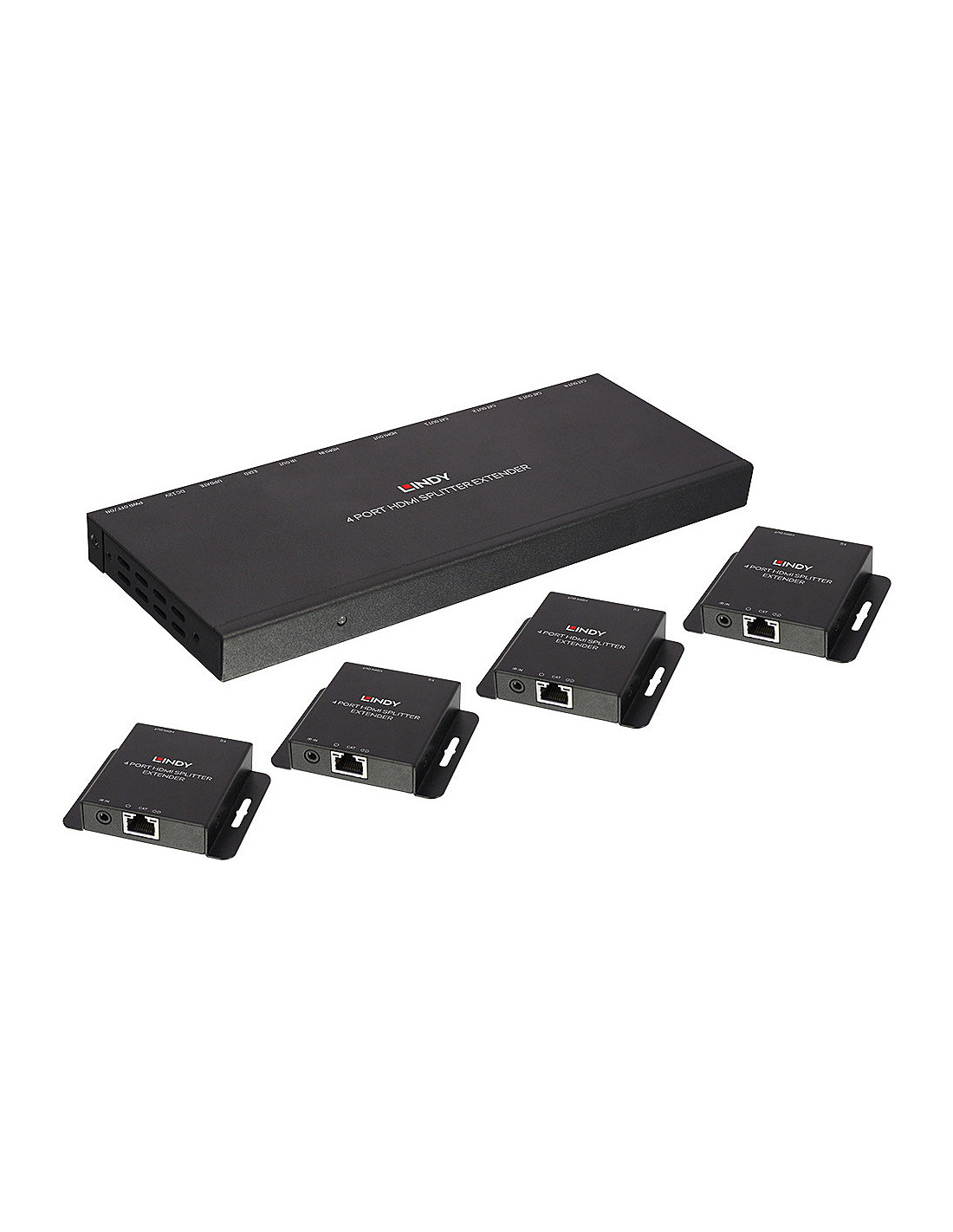 Questo Splitter Extender Cat.6 4 porte HDMI & IR invia un segnale HDMI fino a 50m e lo distribuisce su fino a 4 monitor. Necessita di un cavo di rete Cat.6 U/UTP della lunghezza desiderata per ogni monitor (non inclusi nella fornitura). In aggiunta può trasportare anche il segnale IR del telecomando (20-60Hz).