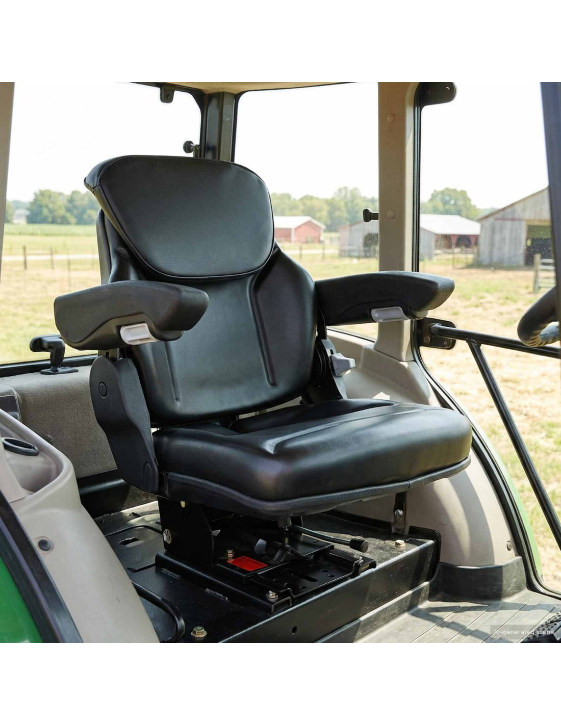 Questo sedile con sospensione è compatibile con vari mezzi come trattori e carrelli elevatori. Ha caratteristiche di sicurezza certificate E-mark, una sospensione regolabile, e si adatta a conducenti da 50 kg a 130 kg. Materiali resistenti: Fatto di acciaio e PVC. La base d'acciaio offre supporto, mentre il PVC resiste ai vari ambienti di lavoro. Regolazione totale: Ha testiera, braccioli e schienale regolabili da 0° a 110°. Include fino a 15 cm di regolazione avanti e indietro per adattarsi a diverse misure. Sospensione e vibrazioni: Il sistema di sospensione verticale da 6 cm riduce gli urti e le vibrazioni, meno fatica per il conducente. Certificazione di sicurezza: Certificato E-mark, rispetta gli standard di sicurezza. Capacità di carico flessibile: Supporta tra 50 kg e 130 kg, con sospensione regolabile in base al peso per diversi utenti.