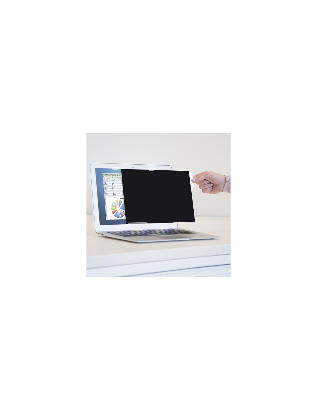 Fellowes PrivaScreen. Capienza massima dimensioni dello schermo: 33,8 cm (13.3"). Formato: 16:9. Adatto per: Computer portatile, Tipo: Filtro per la privacy senza bordi per display. Funzioni di protezione: Antigraffio, Limita l'angolo di visione: 30°. Peso: 40 g