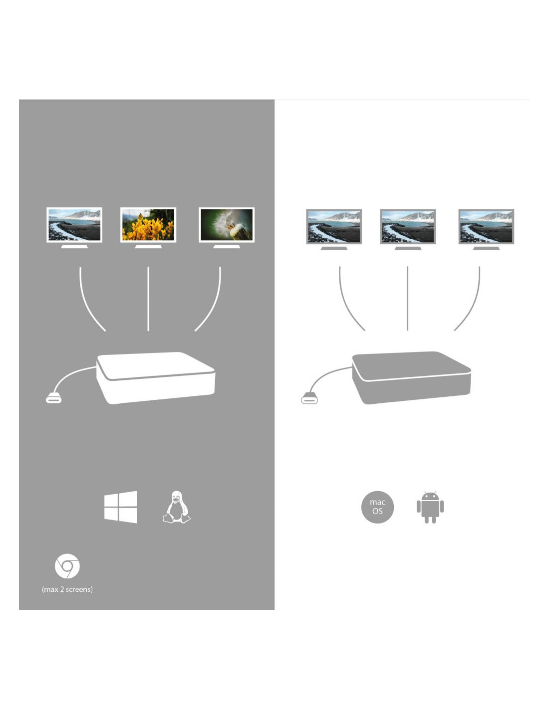 Annotazione: Il sistema operativo MacOS non supporta la tecnologia Multi Stream Transport (MST) (2 monitor in modalità Area ampliata). Nessuna stazione dock che usa la modalità USB-C DisplayPort Alt Mode supporta il collegamento di 2 monitor nel sistema operativo MacOS.