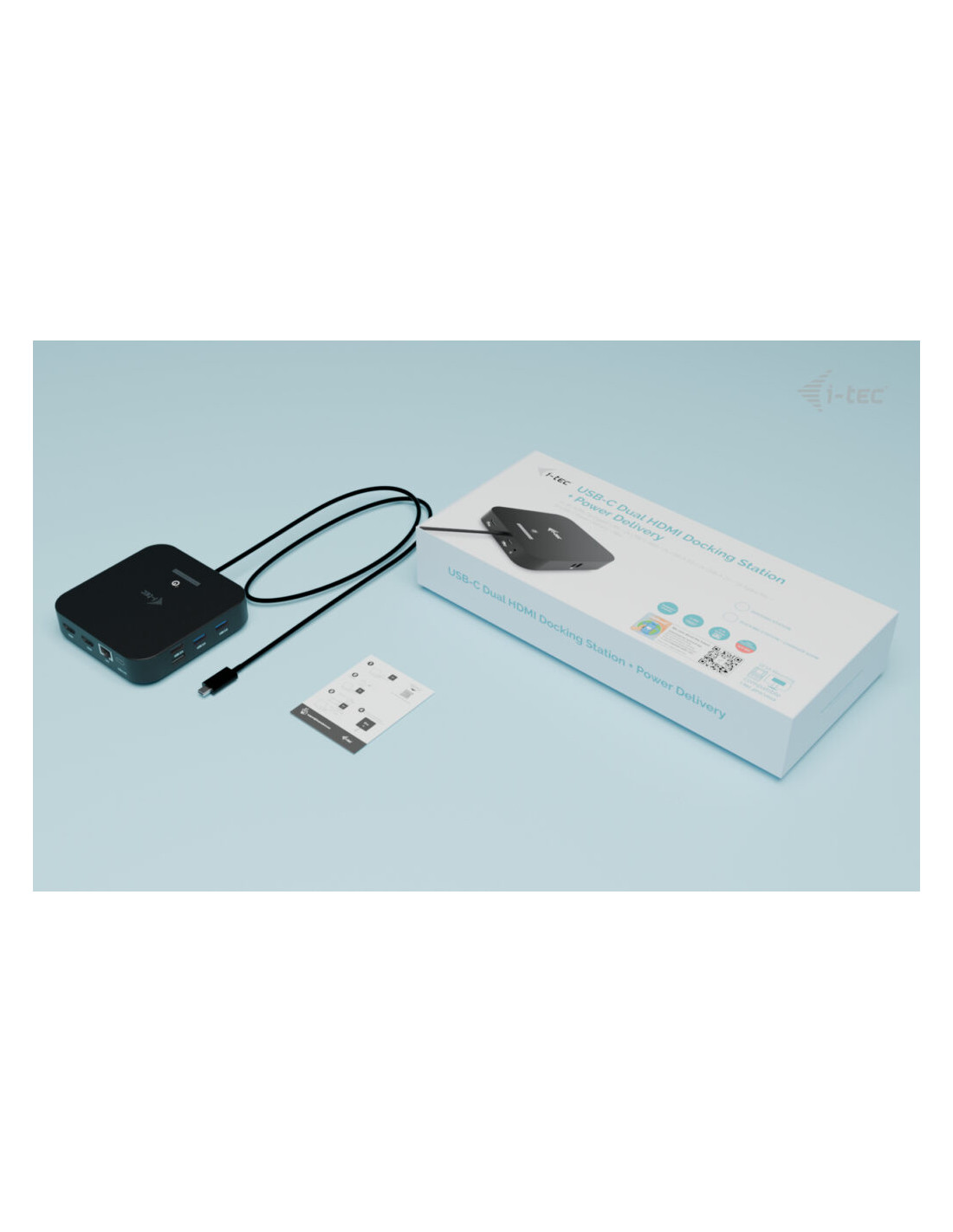i-tec USB-C Dual HDMI Docking Station with Power Delivery 100 W. Tecnologia di connessione: Cablato, Interfaccia host: USB 3.2 Gen 2 (3.1 Gen 2) Type-C, Fornitura di alimentazione USB fino a: 100 W. Velocità trasferimento Ethernet LAN: 10,100,1000 Mbit/s. Colore del prodotto: Nero, Velocità di trasferimento dati: 10 Gbit/s, Risoluzione (digitale massima): 3840 x 2160 Pixel. Tipologia alimentazione: USB, Connettore di alimentazione: USB tipo-C, Voltaggio di uscita: 20 V. Sistema operativo Windows supportato: Windows 10, Windows 11, Altri sistemi operativi supportati: Android, ChromeOS, iPadOS