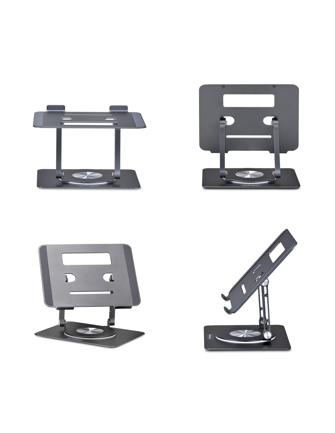 Questo supporto per PC portatile rotante solleva il laptop a una posizione di visualizzazione più naturale. Una soluzione compatta ed ergonomica per migliorare il comfort del posto di lavoro. Ideale per scrivanie a casa, in ufficio o in movimento.