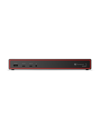 Lenovo ThinkPad Thunderbolt 5 Smart Dock 7500. Tecnologia di connessione: Cablato, Interfaccia host: Thunderbolt 5, Fornitura di alimentazione USB fino a: 180 W. Velocità trasferimento Ethernet LAN: 2500 Mbit/s. Colore del prodotto: Nero, Nome del colore: Eclipse Black, Tipologia HD: 8K Ultra HD. Tipologia alimentazione: AC, Alimentazione: 265 W. Larghezza: 235 mm, Profondità: 80 mm, Altezza: 30 mm