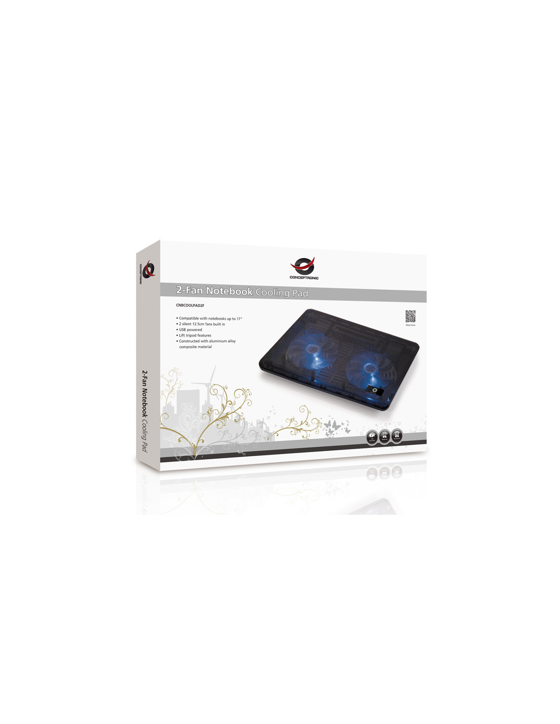 Il pad di raffreddamento per notebook Conceptronic mantiene un funzionamento sicuro e comodo dei dispositivi portatili, utilizzando due ventole silenziose, ma potenti. Il pad di raffreddamento viene alimentato tramite USB, in modo che possa funzionare ovunque senza la necessità di una presa di corrente. Il pad è stato sapientemente progettato con una scanalatura per il cavo USB, per evitare che il cavo si aggrovigli e venga danneggiato. Un'aggiunta pratico e versatile a lavoro e gioco su dispositivo mobile.