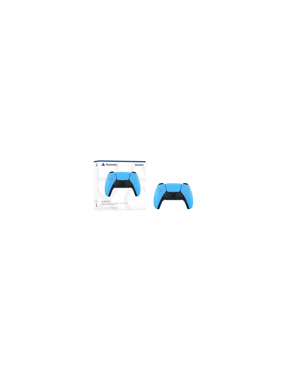 Sony Controller wireless DualSense Starlight Blue V2. Tipo di dispositivo: Gamepad, Piattaforme di gioco supportate: Android, MAC, PC, PlayStation 5, iOS, Tasti funzione per il controllo del gioco: D-pad, Tasto Home, Pulsante Opzioni, Pulsante Condividi. Tecnologia di connessione: Con cavo e senza cavo, Interfaccia dispositivo: Bluetooth/USB, Connettore USB: USB tipo-C. Colore del prodotto: Blu. Alimentazione: Batteria, Tipo batteria: Da Incasso. Larghezza: 160 mm, Profondità: 106 mm, Altezza: 66 mm