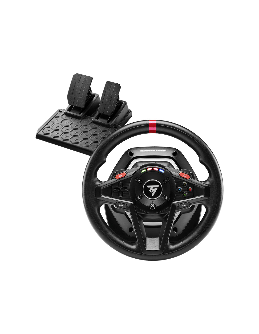 Thrustmaster T128. Tipo di dispositivo: Sterzo + Pedali, Piattaforme di gioco supportate: PC, Xbox, Xbox One, Tasti funzione per il controllo del gioco: Pulsante del freno a mano, View button, Setting button, Pulsanti direzionali, Pulsante Menu,.... Tecnologia di connessione: Cablato, Interfaccia dispositivo: USB, Connettore USB: USB tipo-C. Colore del prodotto: Nero. Alimentazione: AC, Voltaggio di ingresso: 100 - 240 V, Corrente d'uscita: 2,6 A. Larghezza: 260 mm, Profondità: 300 mm, Altezza: 280 mm