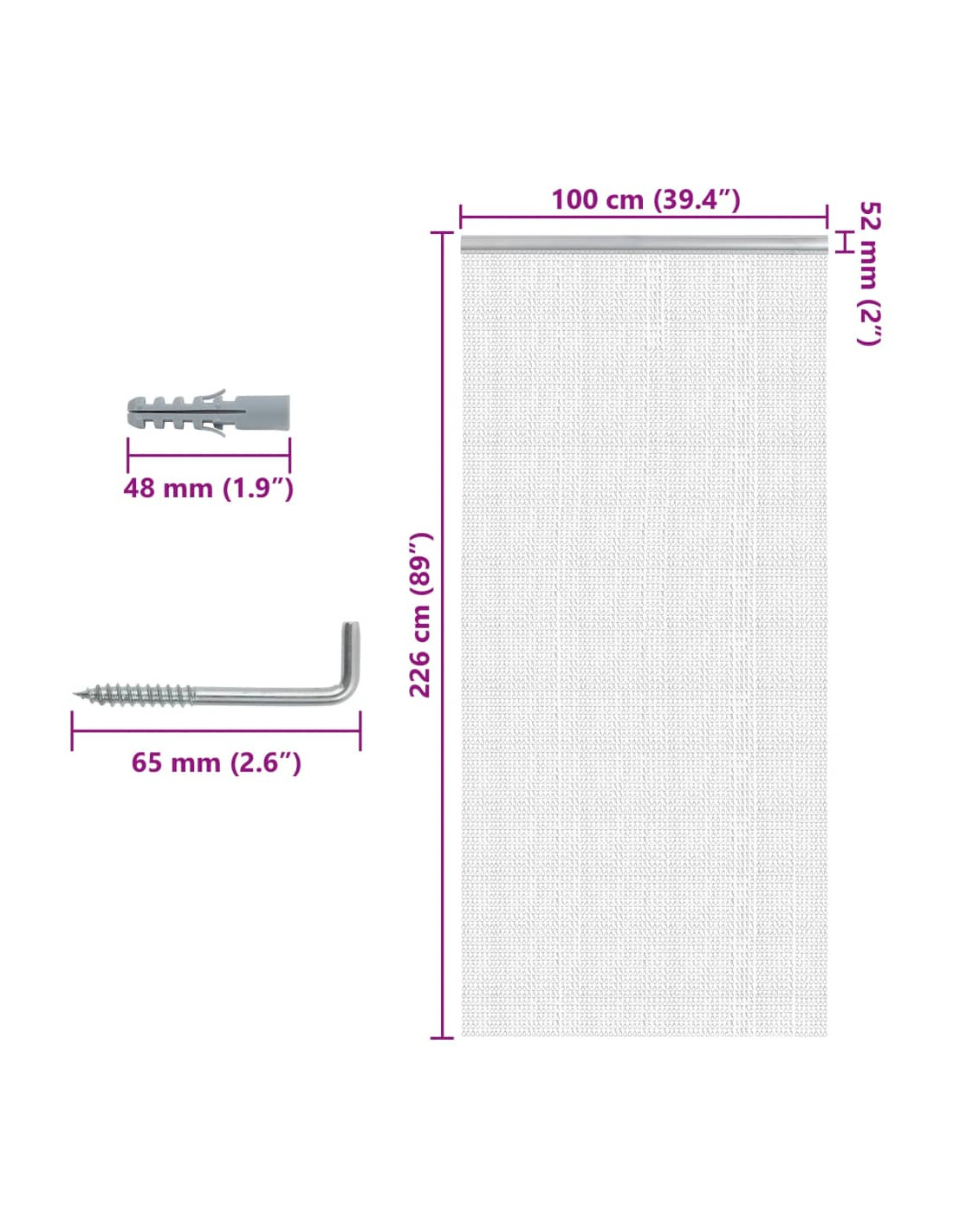 Questa semplice ma efficace zanzariera per porte a catena tiene le mosche e altri insetti volanti fuori dalla vostra casa o dal vostro posto di lavoro! Di lunga durata e resistente: Questa tenda per le porte è realizzata in alluminio leggero, liscio, resistente ai colori e alla corrosione, garantendo prestazioni di lunga durata.Barriera protettiva: Appendendo questa zanzariera da porta, potete mantenere una privacy perfetta tenendo lontane mosche, insetti e vespe e bloccando un po' di luce e polvere. Al contempo, consente all'aria fresca di fluire all'interno.Larghezza e lunghezza regolabili: La maglia della catena può essere facilmente rimossa e regolata alla larghezza desiderata. Inoltre, potete personalizzare la lunghezza aggiungendo o rimuovere i ganci.Facile da attraversare: Questa tenda antimosche è ottima per le case con animali domestici e bambini, in quanto possono attraversarla facilmente senza alcuna difficoltà.Multiuso: Questa zanzariera per porte può essere utilizzata per dividere le stanze o decorare vari ambienti come case, cucine, bagni, ristoranti, caffetterie e pub.