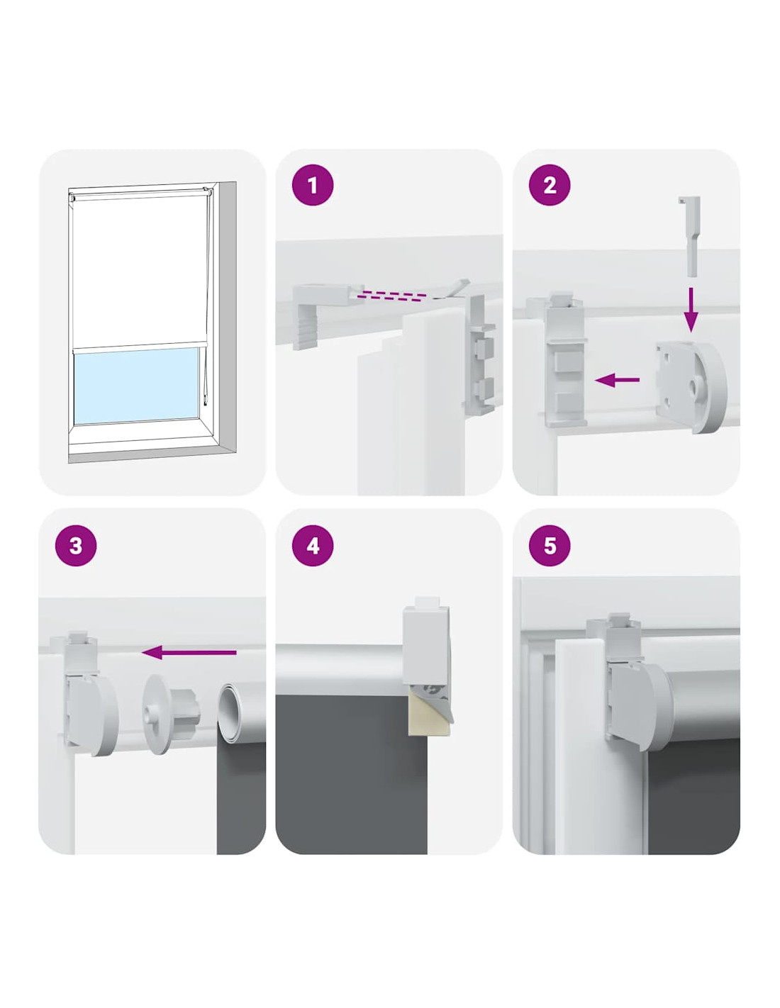- Diversi metodi di montaggio: È possibile fissare la tenda a rullo alla parete o alla finestra con viti o senza trapano utilizzando staffe di serraggio, a seconda delle proprie esigenze. Staffe di serraggio per spessore di battuta del telaio della finestra compreso tra 1,6 e 2,2 cm.