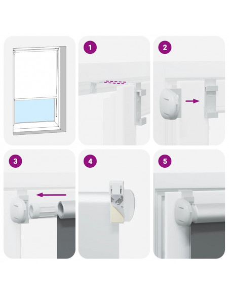 - Diversi metodi di montaggio: È possibile fissare la tenda a rullo alla parete o alla finestra con viti o senza trapano utilizzando staffe di serraggio, a seconda delle proprie esigenze. Staffe di serraggio per spessore di battuta del telaio della finestra compreso tra 1,6 e 2,5 cm.