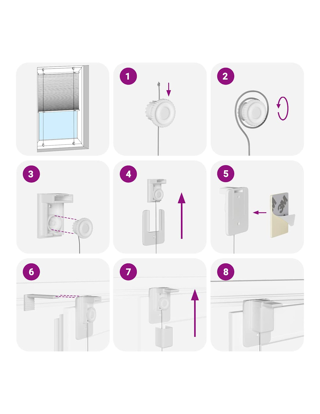 - Due modi di montaggio: È possibile fissare la tenda plissettata alla parete o alla finestra con viti o senza trapano utilizzando staffe di serraggio, a seconda delle esigenze.