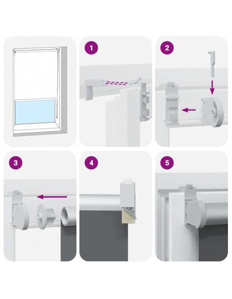 - Diversi metodi di montaggio: È possibile fissare la tenda a rullo alla parete o alla finestra con viti o senza trapano utilizzando staffe di serraggio, a seconda delle proprie esigenze. Staffe di serraggio per spessore di battuta del telaio della finestra compreso tra 1,6 e 2,2 cm.