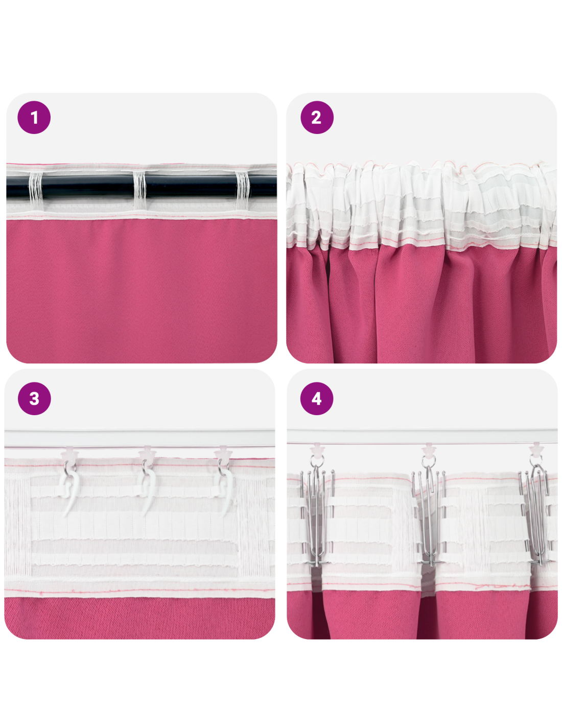 - Opzioni di appendimento versatili: Puoi sistemarle con ganci piccoli, ganci grandi, linguette o tasche per asta, a seconda di cosa preferisci. Questa flessibilità permette un’installazione facile e un miglioramento dell'estetica della tua casa.