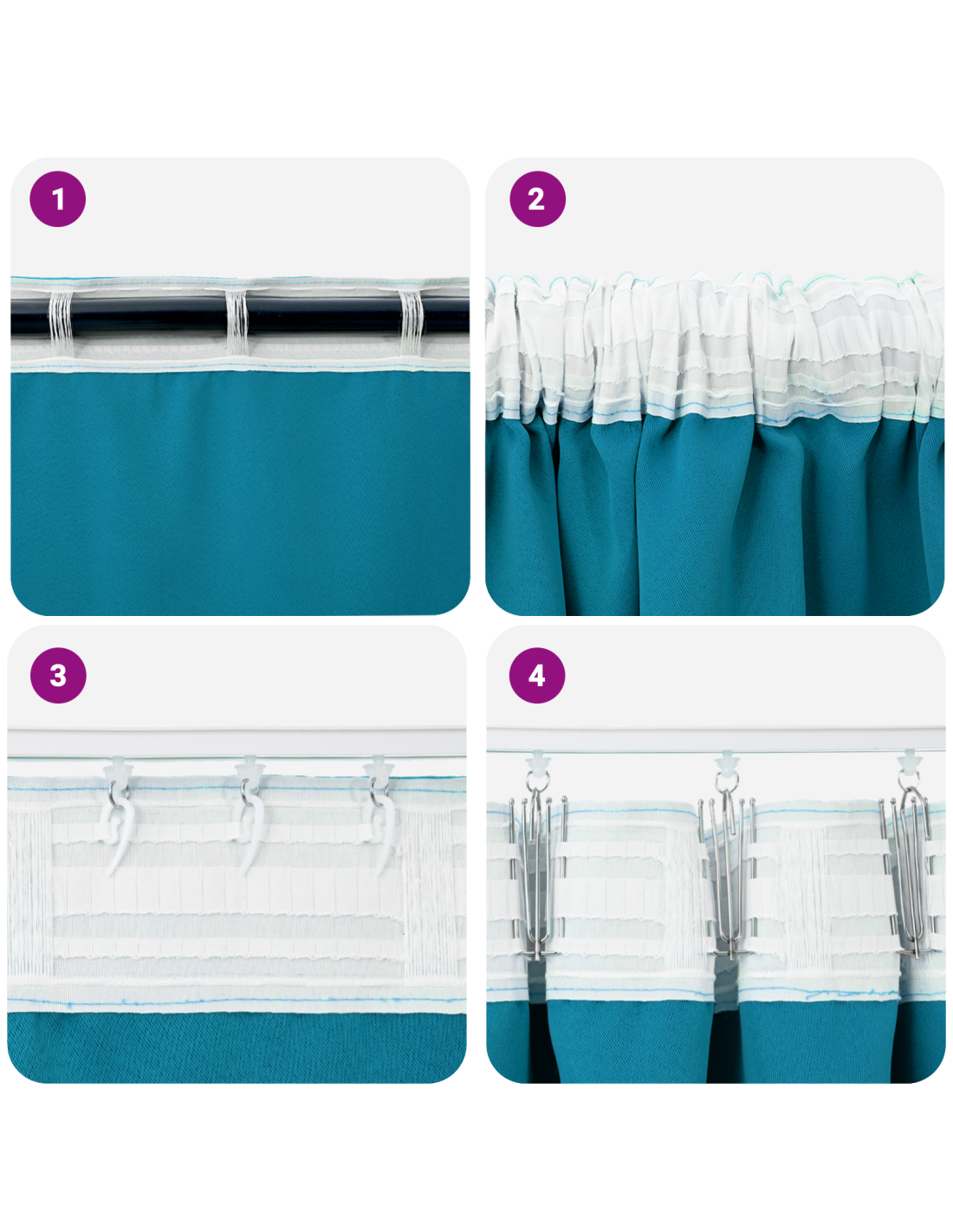 - Opzioni di appendimento versatili: Puoi sistemarle con ganci piccoli, ganci grandi, linguette o tasche per asta, a seconda di cosa preferisci. Questa flessibilità permette un’installazione facile e un miglioramento dell'estetica della tua casa.