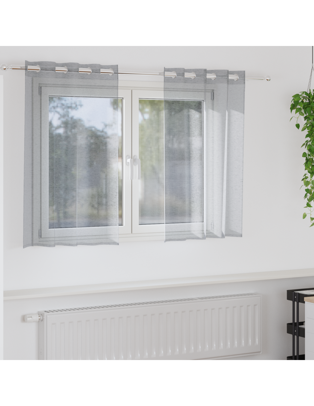 Questa tenda in voile ha un design moderno e elegante, perfetta per rendere qualsiasi spazio abitativo speciale. Grazie alla sua trasparenza e al look stiloso, porta subito un tocco di classe a soggiorni, camere e uffici, filtrando la luce e creando un'atmosfera serena.