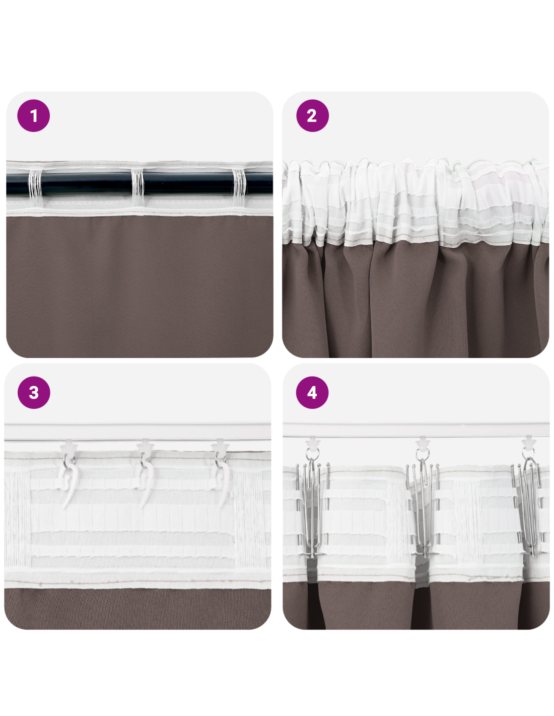 - Opzioni di appendimento versatili: Puoi sistemarle con ganci piccoli, ganci grandi, linguette o tasche per asta, a seconda di cosa preferisci. Questa flessibilità permette un’installazione facile e un miglioramento dell'estetica della tua casa.
