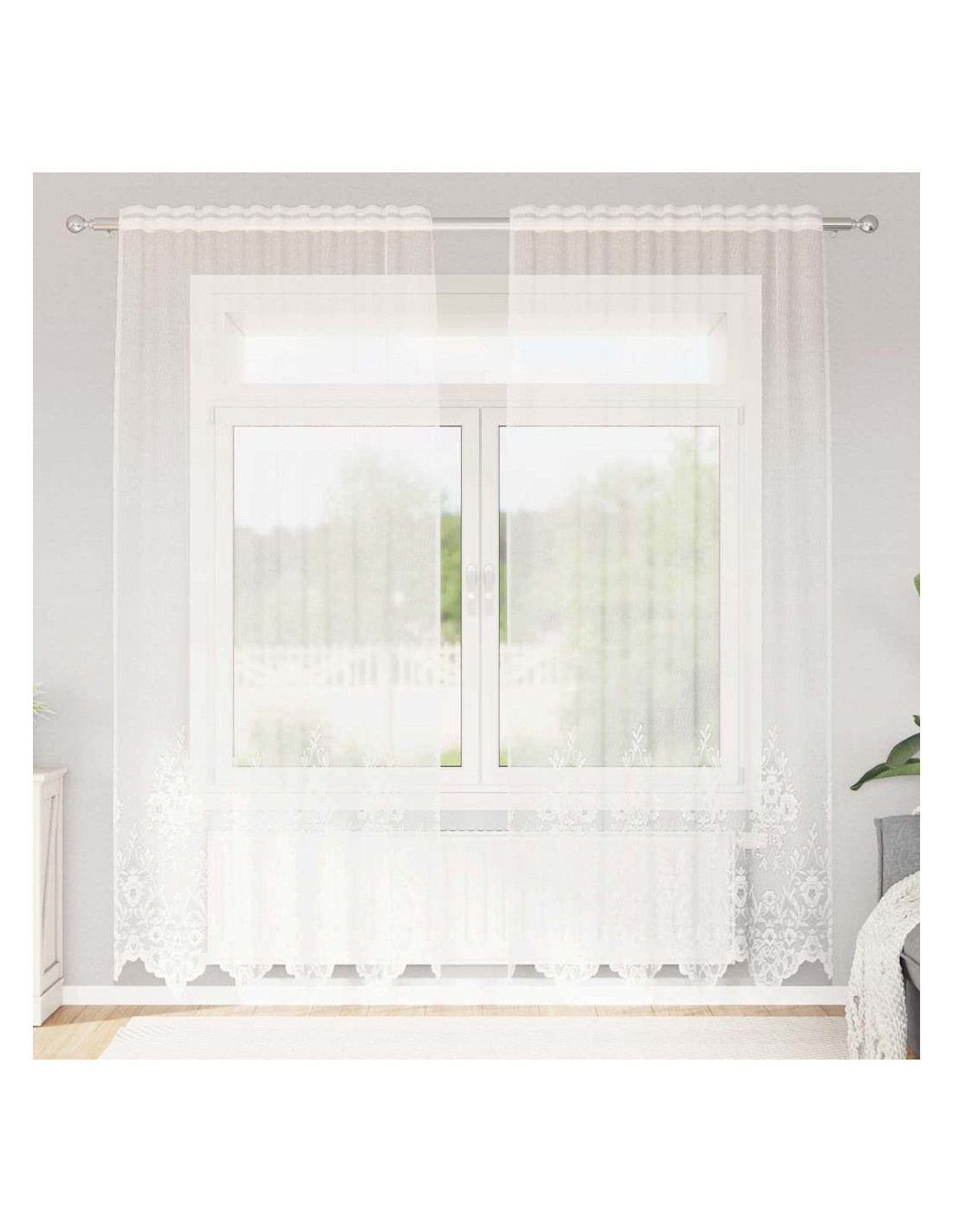 - Materiali: Realizzate in poliestere di alta qualità, queste tende in pizzo hanno una morbidezza piacevole e un aspetto elegante, drappeggiandosi perfettamente sulle finestre. Il poliestere garantisce resistenza e si combina alla perfezione con diversi interni, rendendole una scelta versatile per qualsiasi stanza. Progettate per uso interno, aggiungono un tocco di raffinatezza e sono facili da mantenere.