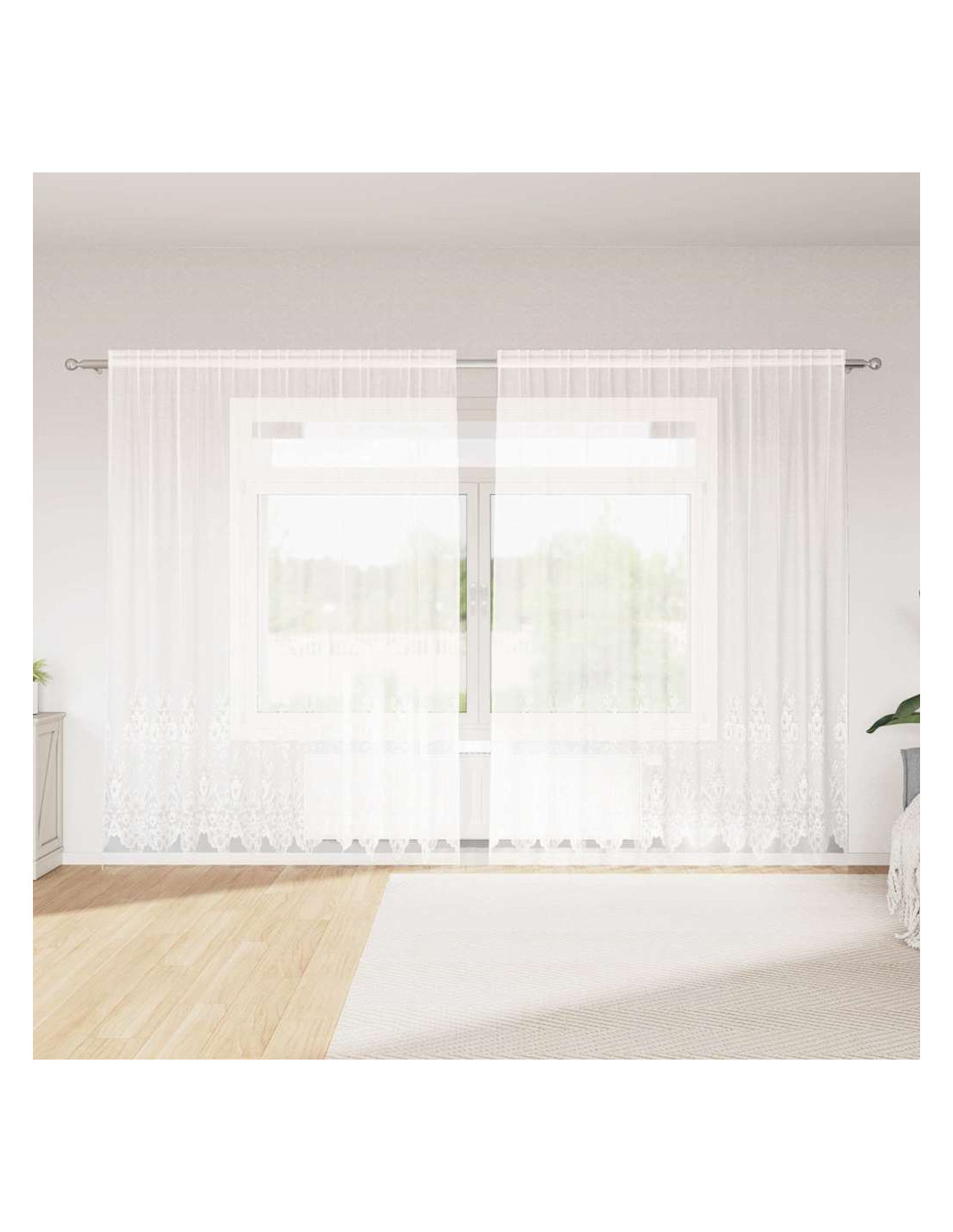 - Materiali: Realizzate in poliestere di alta qualità, queste tende in pizzo hanno una morbidezza piacevole e un aspetto elegante, drappeggiandosi perfettamente sulle finestre. Il poliestere garantisce resistenza e si combina alla perfezione con diversi interni, rendendole una scelta versatile per qualsiasi stanza. Progettate per uso interno, aggiungono un tocco di raffinatezza e sono facili da mantenere.