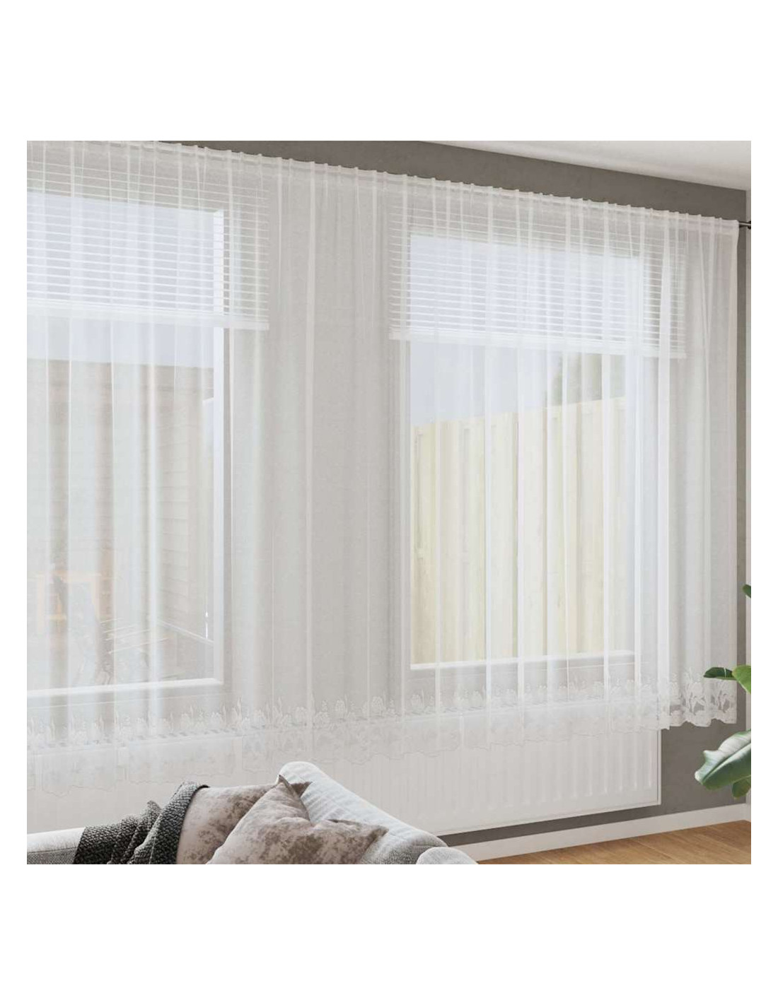 - Materiali: Realizzate in poliestere di alta qualità, queste tende in pizzo hanno una morbidezza piacevole e un aspetto elegante, drappeggiandosi perfettamente sulle finestre. Il poliestere garantisce resistenza e si combina alla perfezione con diversi interni, rendendole una scelta versatile per qualsiasi stanza. Progettate per uso interno, aggiungono un tocco di raffinatezza e sono facili da mantenere.