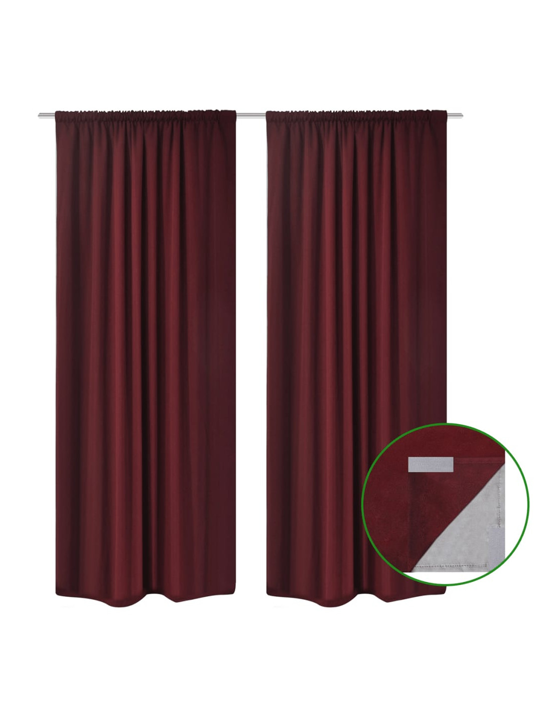 Lo strato di rivestimento posteriore della tenda è realizzato in tessuto rivestito in poliestere che, oltre a bloccare completamente la luce proveniente dall'esterno, mantiene anche la stanza calda d'inverno e fresca d'estate. I 2 strati sono tenuti insieme perfettamente grazie alle chiusure a strappo.