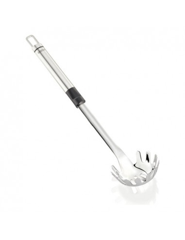 Chic, semplice ed elegante: è questo lo stile degli strumenti da cucina LEIFHEIT della serie ProLine. La combinazione di alta qualità dell'acciaio inox e della plastica nera è una caratteristica di design di tutte le cucine ed è perfetta per servire in tavola. Anche la maneggevolezza soddisfa le aspettative. L'impugnatura ovale del cucchiaio per spaghetti ProLine in acciaio inox di alta qualità rimane comodamente e saldamente in mano e conferisce una piacevole stabilità. La dotazione comprende il pratico occhiello di aggancio per l'appendino ProLine disponibile a parte.