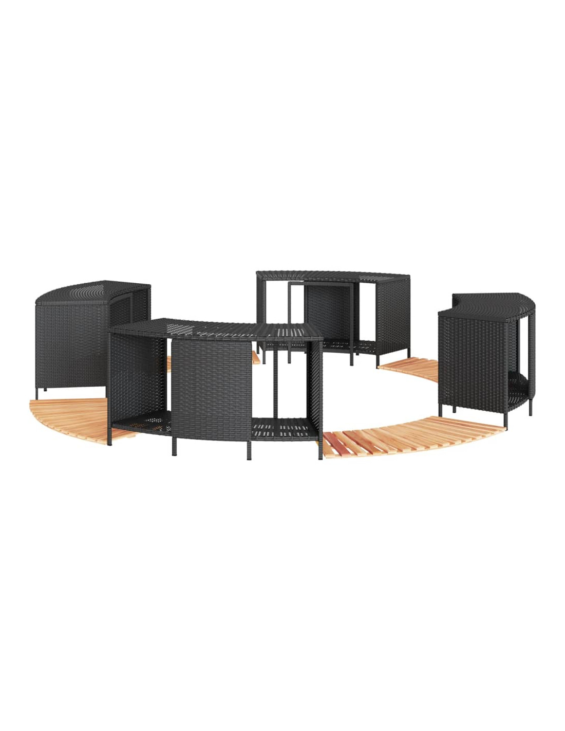 Bordo per Spa Nero in Polyrattan e Legno Massello di Acacia