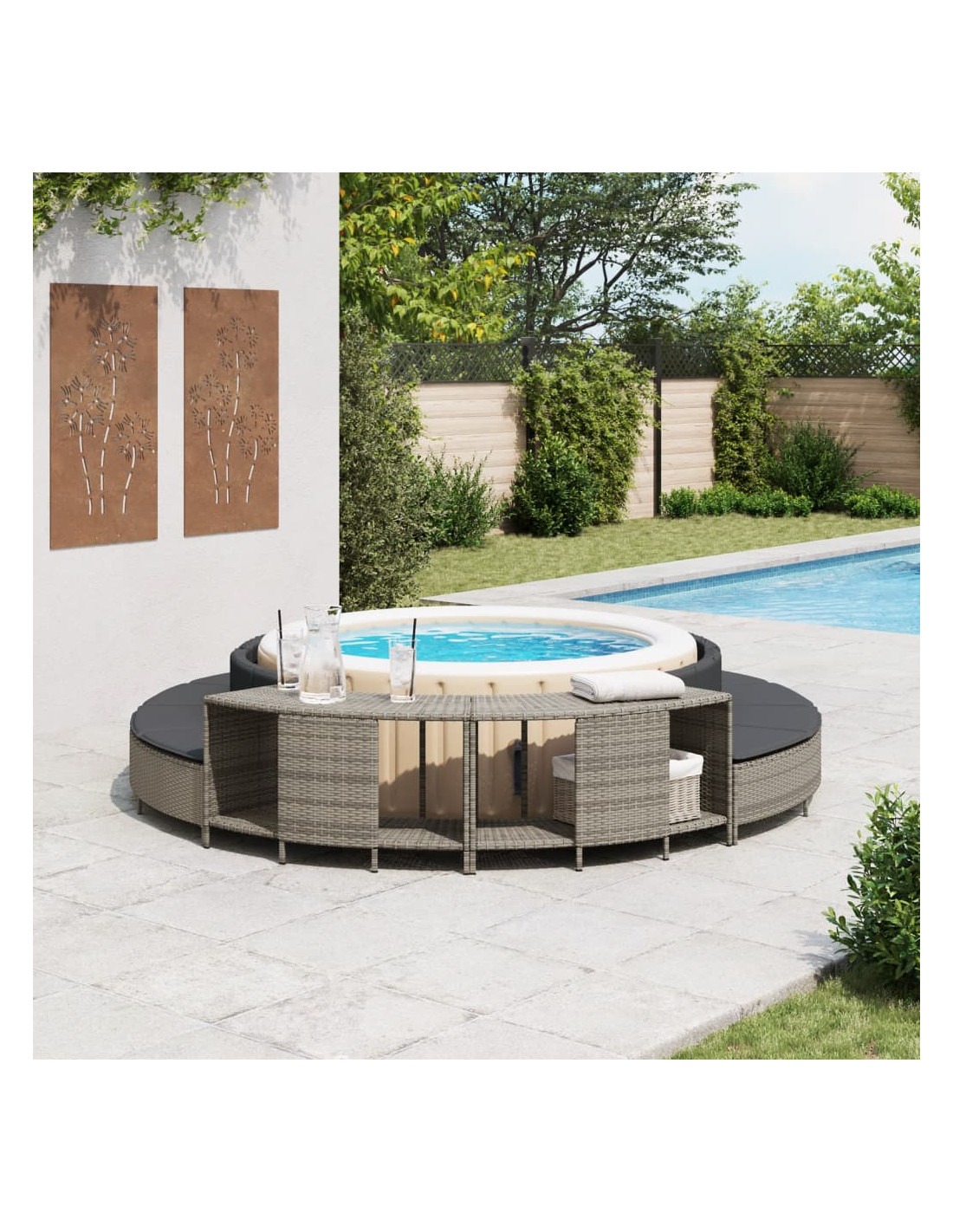 Migliorate l'esperienza della spa per voi e per i vostri ospiti con questi scaffali portaoggetti per la vasca idromassaggio in polyrattan.