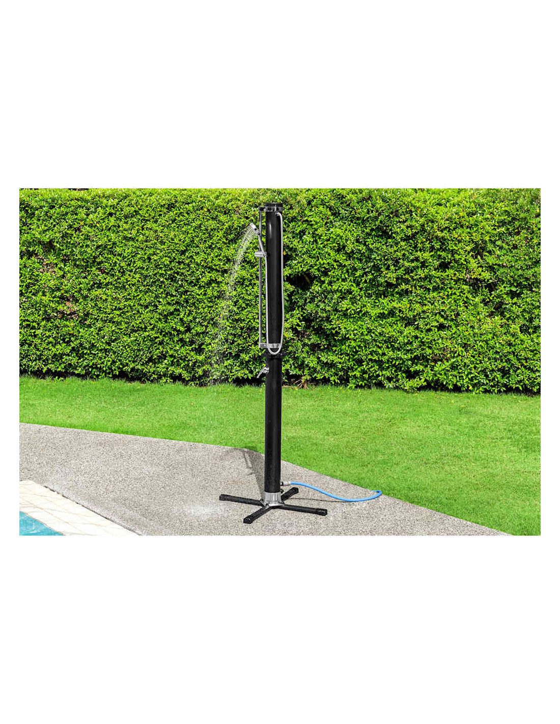 La doccia da esterno Solar Flow della Bestway è la soluzione ideale per tutti coloro che vogliono farsi una doccia prima di tuffarsi in piscina, ma non solo. Materiale resistente: La doccia è realizzato in resistente acciaio inossidabile e PVC, che garantiscono una lunga durata del prodotto e la resistenza agli agenti atmosferici.Fantastica esperienza di doccia: Collegatelo a un tubo da giardino standard (tubo non incluso) con uno dei connettori rapidi, e utilizzate la maniglia per la regolazione del flusso e della temperatura dell'acqua per creare l'esperienza di doccia ideale. Il soffione regolabile può essere fisso o manuale, e dispone di diverse impostazioni di getto.Doccia calda: Lasciate l'acqua nel serbatoio della doccia da giardino da 20 L (5,2 gal.) per riscaldarla con il sole.Facile da montare: Fissate la doccia solare all'ampia base inclusa per avere un maggiore supporto e spostare la doccia da esterno dove volete in qualsiasi momento, o montatela direttamente su una terrazza o un patio fissandola al suolo.