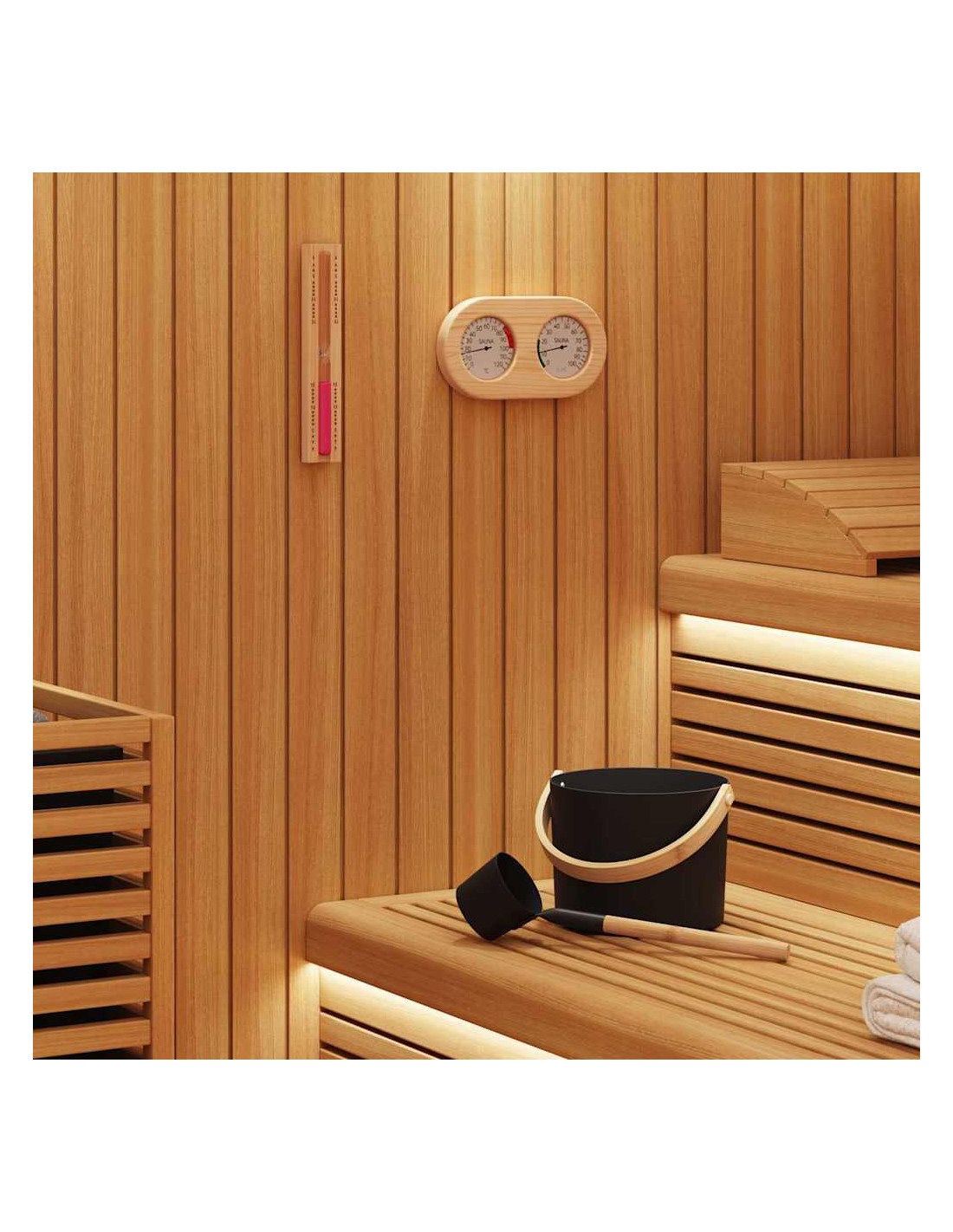 Questo set di secchi in alluminio per sauna ha un design moderno e contemporaneo che migliora sia l'aspetto funzionale che quello estetico delle esperienze nella sauna. Realizzato in resistente legno di pino massello e alluminio, la sua elegante finitura nera con texture spazzolata conferisce un tocco di sofisticatezza alla sua forma cilindrica e minimalista: un must per chi ama la sauna e cerca stile e utilità.