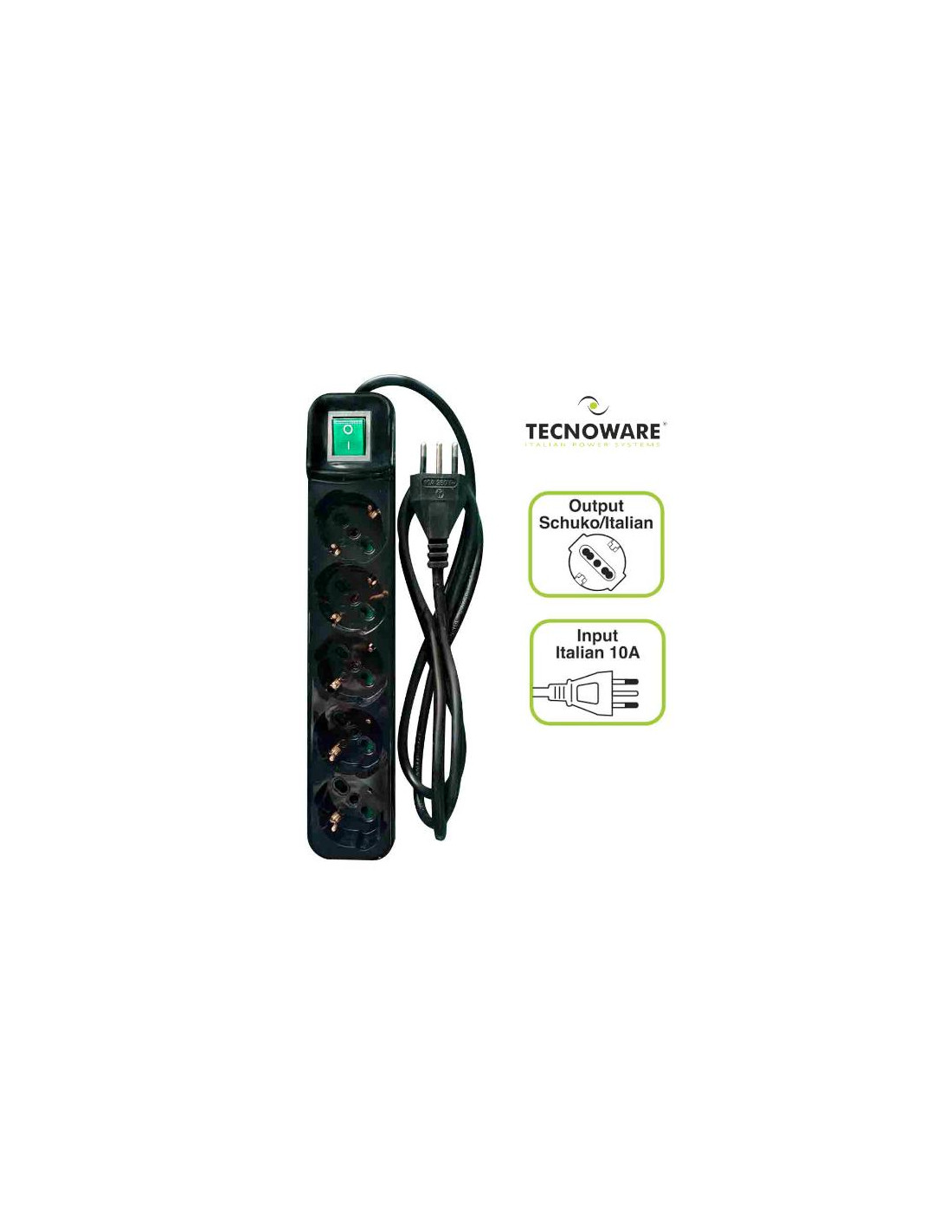 TECNOWARE - MULTIPRESA FILTRATA CON INTERRUTTORE LUMINOSO SPINA IN INGRESSO ITALIANA E 5 USCITE SHUKO - 10/16A - NERO