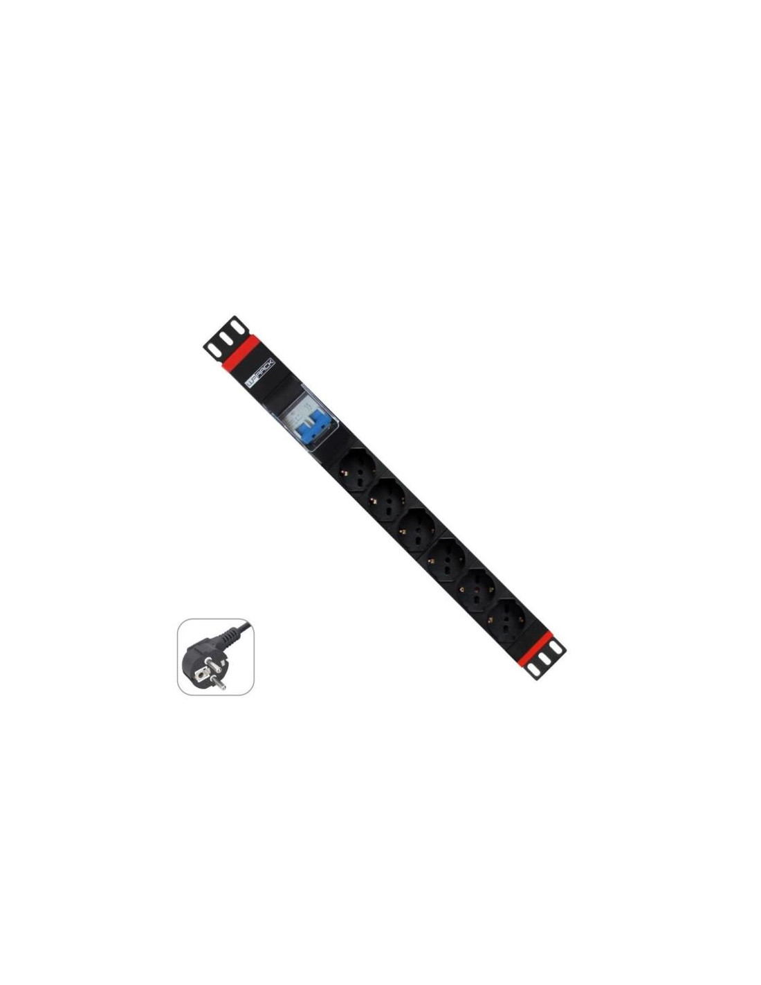 MULTIPRESA 19 POLLICI 1U CON 6 PRESE ITALIANE/SCHUKO CON MAGNETOTERMICO E SPINA SCHUKO