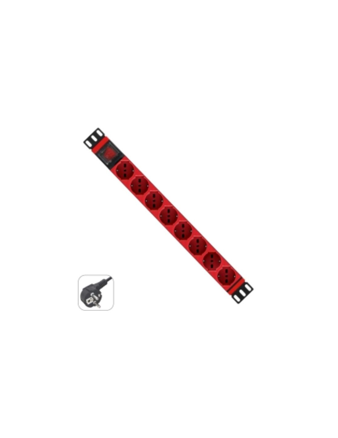 MULTIPRESA 19 POLLICI 1U CON 8 PRESE UNIVERSALI CON SPINE ROSSE