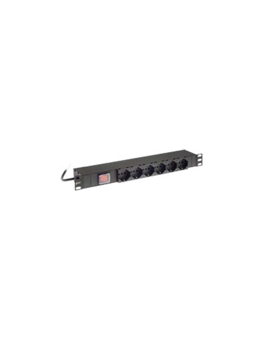 BARRA DI ALIMENTAZIONE 6 PRESE INTERRUTTORE LUMINOSO COLORE NERO - CAVO 2MT.E SPINA SCHUKO - 1U